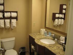 Das Hampton Inn ist ein neues Hotel. Alles roch noch frisch, alles war sehr sauber. Das Frühstück war sehr gut.