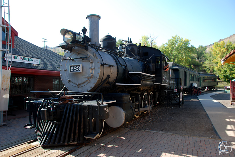 In Antonito steht direkt neben der Straße ein Zug der „Cumbres & Toltec