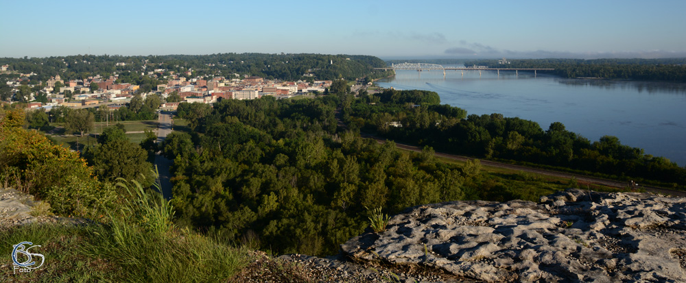 • Als wir in Hannibal aufwachen beginnt es gerade zu dämmern und obwohl wir es ruhig angehen sind wir mit die ersten im Frühstücksraum. Mit einem guten Kaffee und allerlei Leckereien starten wir in den Tag. Der Blick aus dem Fenster lässt einen herrlichen Tag erahnen, so dauert es nicht lange und wir stehen unten am Mississippi. Über dem Flusstal haben sich Nebel gebildet, die nun langsam der Sonne weichen. Kurz hinter Hannibal gibt es einen Aussichtspunkt an dem wir einige Minuten verweilen… hier hoch über der kleinen Stadt am großen Strom herrscht eine wunderbare Stille. Weiter geht die Fahrt durch eine abwechslungsreiche und erstaunlich hügelige ja fast schon bergige Landschaft. Die „Great River Road“ schlängelt sich durch immer noch Nebelschwaden verhangene Wälder und in der Morgensonne liegende Felder. Es ist Wochenende und kaum Verkehr, in Louisiana queren wir den Mississippi und sind nun wieder in Illinois. Auch hier folgen wir weiter dem Fluss auf idyllischen Nebenstraßen. Nachdem Zusammenfluss mit dem Illinois River ändert sich das Uferbild und gleich neben der Straße erhebt sich eine grandiose Steilküste. Allerdings beginnt hier auch der Großraum von St. Louis und damit ist erst einmal Schluss mit ländlicher Abgeschiedenheit.