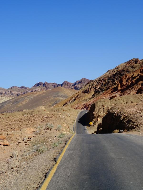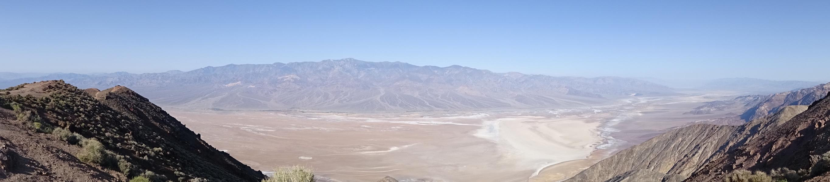 5h... ohhhh... die Nacht war kurz. Trotzdem sind wir fit und freuen uns auf die Weiterfahrt. Endlich weg von hier! Um 5.40h holt der Bell-Man unser Gepäck. Das Auschecken geht sehr flott und um 6h machen wir uns auf den Weg. Da so wenig los ist, halten wir gleich noch am Sign und knipsen unsre Erinnerungsbilder und dann, nichts wie weg von hier! Der Tag wird sehr lang, das Navi zeigt über 10Std. an. Um kurz vor acht erreichen wir unsren höchsten und auch kältesten Punkt für heute... Dantes View. 1641M bei 42°F und extrem windig. Wir halten es nur 5 Min. draußen aus, knipsen ein paar Bilder und fahren gleich weiter. Am Zabriskie Point ist es gleich viel schöner und wärmer. Herrliche 25°C und leichter Wind. Hier können wir ein bisschen länger bleiben und ausgiebig Fotos machen. Gegen Mittag erreichen wir Devil´s Golf Course. Sieht das cool aus hier – HAMMER!