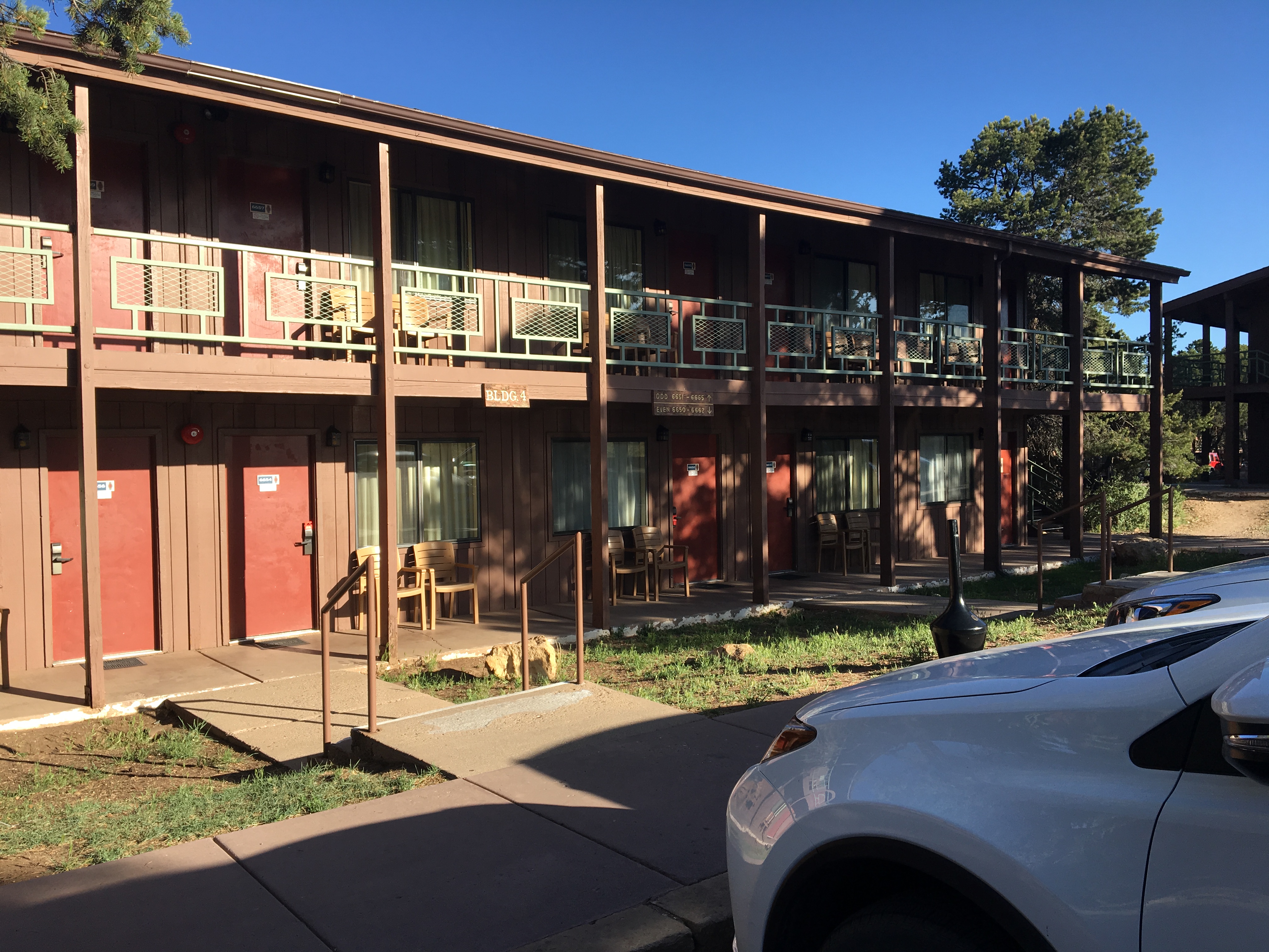 Rustikale Lodge mit mehreren einzelnen Gebäuden. Die Zimmer der South Units haben keine Klimaanlage und sind deshalb günstiger. 5 Minuten Fußweg zum Rim. Im Hauptgebäude findet man die Rezeption, einen Tour-Schalter, einen Souvenir-Shop, einen Pizza-Pub und die wunderbare Cafeteria, die immer einen Besuch lohnt.