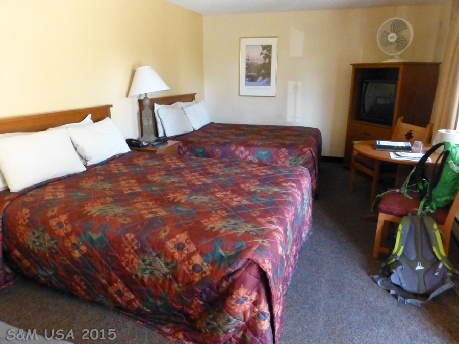 Die Bewertung von 2015 übernehme ich wieder ohne Änderungen. Die Maswik Lodge South ist für uns eine super Basis. 5 Minuten Fußweg zum Rim und die Maswik Cafeteria vor Ort. Die Zimmer sind einfach und etwas altmodisch. Wir wurden gefragt, ob wir während unseres Aufenthaltes auf den Zimmerservice verzichten würden, um Wasser und Strom zu sparen. Wir haben uns dafür entschieden und bekamen als kleines Dankeschön von Xanterra Wasserflaschen geschenkt (s. Foto).