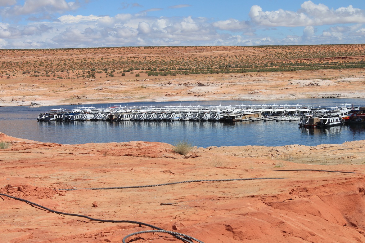 Es ist 14 Uhr und wir machen uns auf den Weg zum Antelope Canyon – JUHU. Dort angekommen denken wir, gleich eine Tour zu bekommen. Falsch gedacht! Wir bekommen nur noch Karten für die 17 Uhr Tour und ich bin mal wieder voll enttäuscht und die dicken, schwarzen Wolken am Himmel sagen auch nichts Gutes. Wir überlegen jetzt noch zur Wahweap Marina zu fahren, aber entscheiden uns dafür, das lieber auf morgen zu verschieben und bis 17 Uhr nochmal heim zu fahren und uns bissl hinzulegen – wir sind schon wieder oder besser gesagt immer noch total kaputt. Daheim angekommen machen wir uns Gedanken. Bis jetzt war alles eigentlich größtenteils Rumgehetze und Stress. Wir sind nur müde und Berni graust es schon vom Autofahren. Wir schauen uns den Wetterbericht für die nächsten Tage, speziell für Moab, an. Da soll es ja morgen hingehen. Ein Tag bewölkt, ein Tag Gewitter und Regen. Ich könnte heulen. Nach langem Hin und Her entscheiden wir uns (ich sehr, sehr schweren Herzens), Moab zu stornieren und alles andere vorzuziehen. Zum Glück funktioniert das alles noch problemlos. Das heißt auch, dass wir das Monument Valley und alle auf dem Weg nach Moab liegenden View Points und geplanten Ziele weg lassen müssen. Auch den Capitol Reef NP und den Highway 12.. Ich bin echt traurig, aber sehe ein, dass das das einzig Vernünftige ist. Wahrscheinlich sehen das nicht hier nicht alle so, aber für uns ists die beste Entscheidung gewesen. Wir kommen ja wieder!