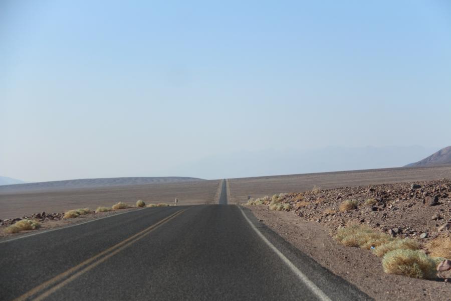 Nach dem Zabriskie Point wollen wir zu dem Ort, der das Death Valley wohl so berühmt gemacht hat. Badwater ist mit 85,5 Metern unter dem Meeresspiegel der tiefste Punkt der USA und auch einer der heißesten und trockensten. Umgeben von verschiedenen Gebirgsketten erreicht so gut wie nie eine Wolke diesen unwirklichen Ort. Die Anfahrt vom Zabriskie Point zieht sich etwas, ist aber nicht langweilig. Natürlich... Man sieht nichts, denn es gibt nichts. Aber eben dieses "Nichts" ist hier wieder das faszinierende.
