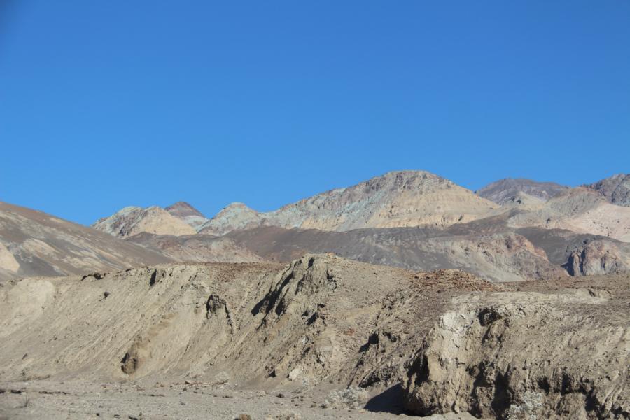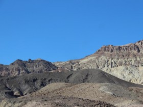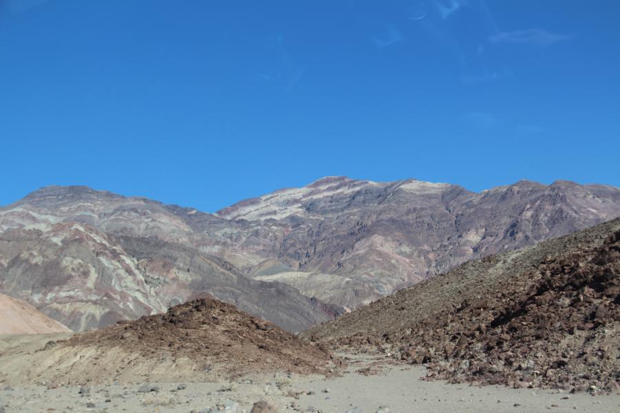 Auf dem Weg vom Badwater Basin zur Furnace Creek Ranch befindet sich der Eingang zum Artist's Drive. Das ist eine Einbahnstraße, die in den Bergen parallel zur Hauptstraße verläuft. Die Straße ist so schmal, dass keine zwei Autos aneinander vorbei passen würden, man muss also hoffen, dass man keinen Schleicher vor sich hat, besonders dann, wenn man die Fahrt mit der GoPro filmen möchte (Jaaaaa, irgendwann reiche ich die Videos nach, versprochen!!
