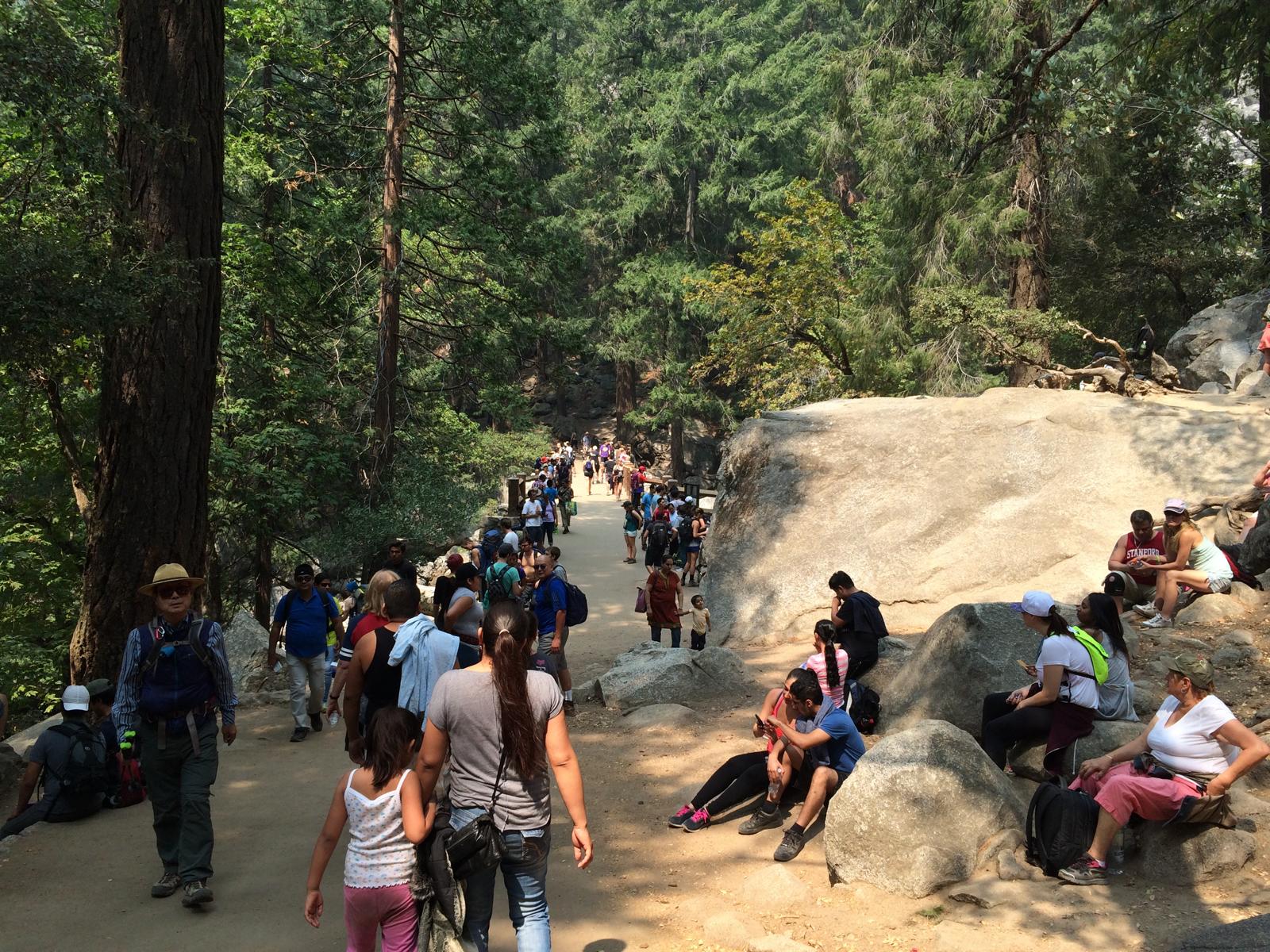 Heute haben wir nicht nur eine lange Fahrstrecke zu bewältigen, sondern auch jede Menge vor. Es geht in den berühmten Yosemite National Park, auf den ich schon besonders gespannt bin. Fast jeder ist ja immer völlig hin und weg von dem Ort, die Bilder wollen mir aber noch nicht 100% gefallen, außer die Aussicht vom Glacier Point... Außerdem weiß ich ja, dass wir nicht die optimalste Reisezeit für den Yosemite haben. Wie dem auch sei... Noch ist es dunkel und ich bin natürlich längst fertig angezogen und beschließe, mich schon einmal auf die Suche nach Eis für die Kühlbox zu begeben. Ich öffne also mit meinem Shirt und meiner kurzen Hose die Tür und bekomme erstmal einen Kälteschock