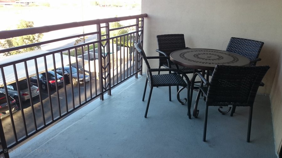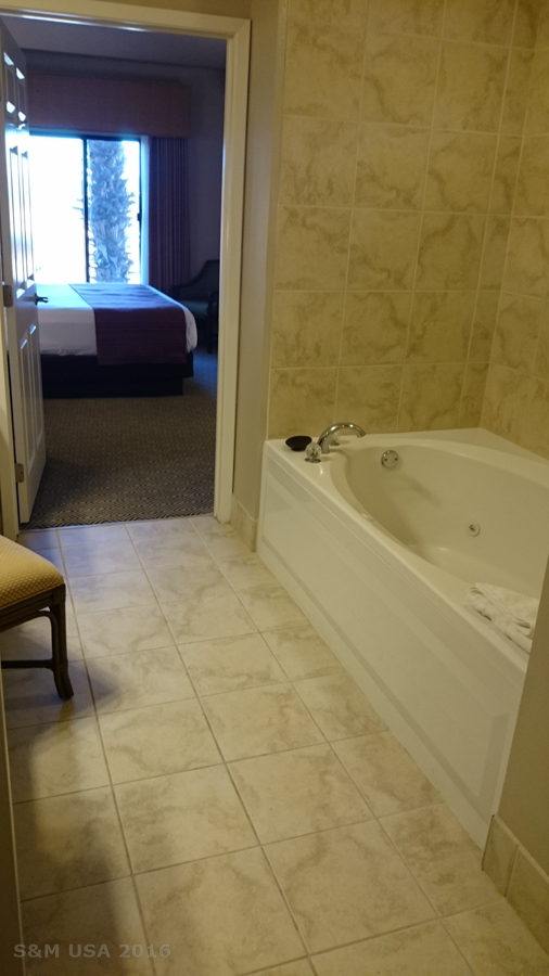 Das Tahiti Village liegt südlich des Flughafens zwischen der Interstate Kreuzung 15/215 und den Premium Outlets South. Auch bis zum Town Square mit dem schönen Whole Foods Supermarkt sind es nur 5 min mit dem Auto. On site befindet sich ein Denny´s und ein hoteleigenes Restaurant. Wir hatten die mittelgroße Bora Bora Suite mit voll ausgestatteter Küche, Wohn-/Esszimmer, Schlafzimmer, Balkon und Badezimmer mit Dampfdusche und Whirlpool. Die Zimmer sind gerade neu renoviert und mit neuen Lampen, Kissen etc. ausgestattet worden. Vom Balkon aus hatten wir einen schönen Ausblick Richtung Flughafen/Strip (wenn da nicht die blöden Werbeschilder wären).