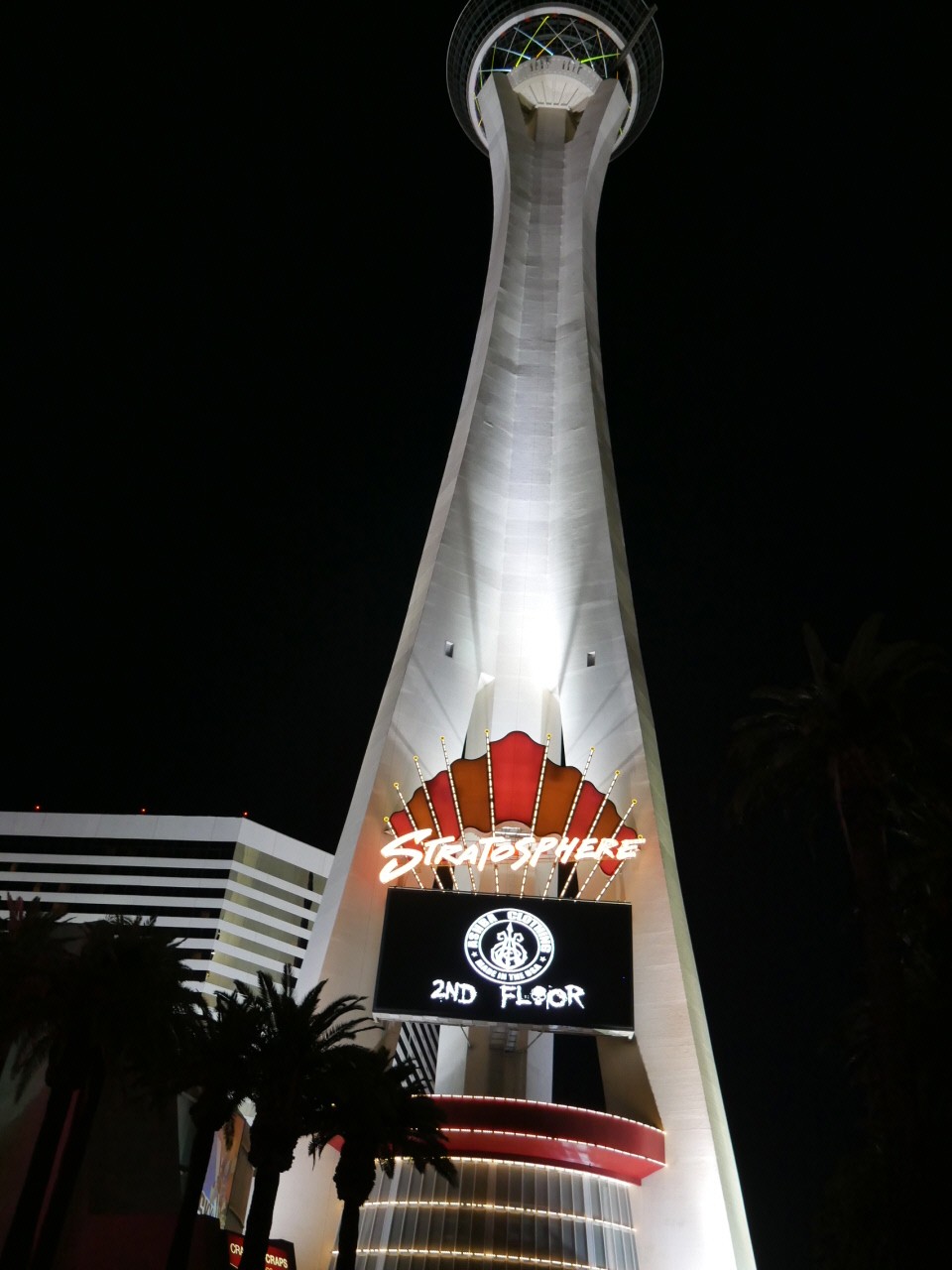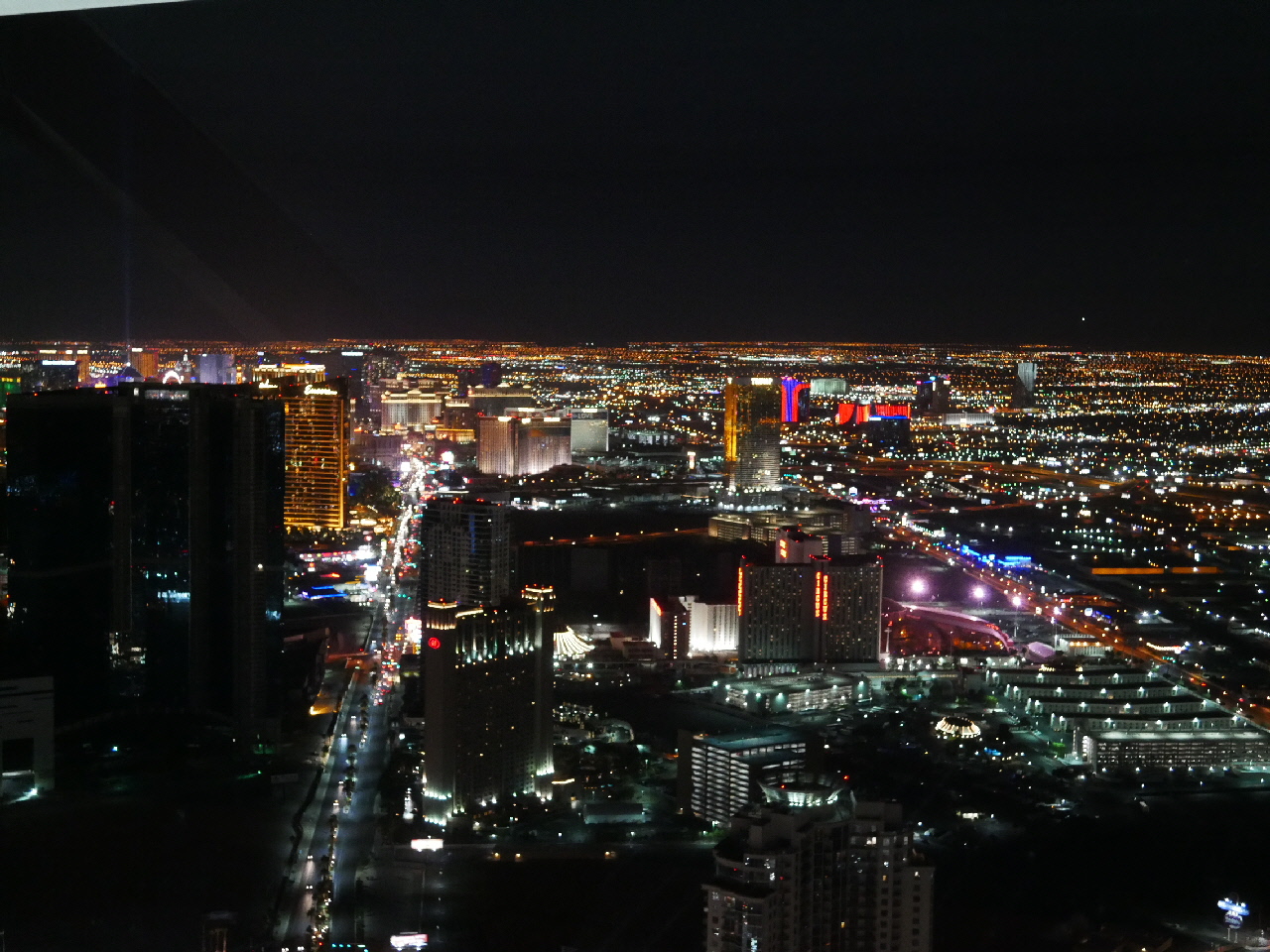 Am Abend schauen wir dann noch direkt im Hotel die MJ live Show, die uns sehr gut gefällt. Danach müssen wir selbstverständlich auch noch auf den Tower, wenn wir doch sowieso direkt vor Ort sind. Die Aussicht auf das nächtliche Las Vegas ist wunderschön, der Wind weht aber richtig kräftig um die Ohren und ist trotz sonst eigentlich angenehmer Temperaturen ziemlich unangenehm – wobei es nach Sonnenuntergang doch schon generell kühler geworden ist.