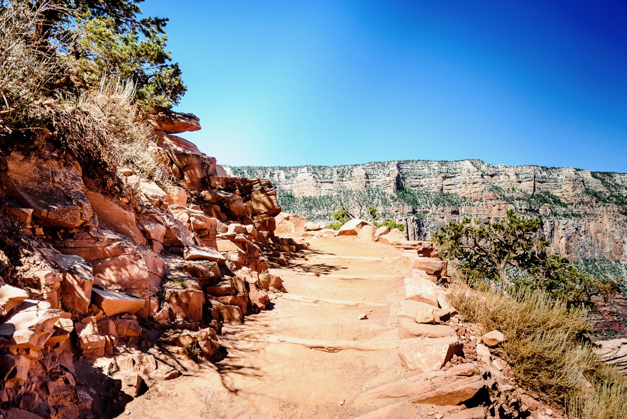 Ufff!!! Heute geht es wieder früh los. Aufstehen um 06.30 Uhr. Kurz frühstücken und dann los zum Grand Canyon. Das erste Stück mit dem Auto, danach mit dem Shuttle Bus zum South Kaibab Trail. Hier wollten wir beginnen den Grand Canyon zu erwandern. Und so liefen wir weiter und weiter, zuerst zum Ooh Aah Point und weiter runter. Ich weiß leider nicht mehr, wie der nächste Punkt hieß. Die Wanderung war ziemlich langweilig und der richtige Funke wollte einfach nicht auf uns überspringen. Wir sind einfach nur den Weg entlang nach unten gelaufen in eine große Schlucht. Viele sind ja total verliebt in den Grand Canyon, ich kann das leider nicht von mir behaupten. Wir wollten eigentlich noch ein ganzes Stück weiter wandern aber da es uns beiden ähnlich ging, beschlossen wir schon vorher kehrt zu machen und zurück zum Ausgangspunkt zu gehen. So war die Wanderung im Grand Canyon schon 90 Minuten früher als geplant beendet. Ob es der Grand Canyon bei einer neuen Reise nochmals auf die Reiseroute schafft, kann ich heute nicht versprechen. Vielleicht ein anderer Ort. Vielleicht das Indianer Resort mit dem Skywalk? Wir werden sehen