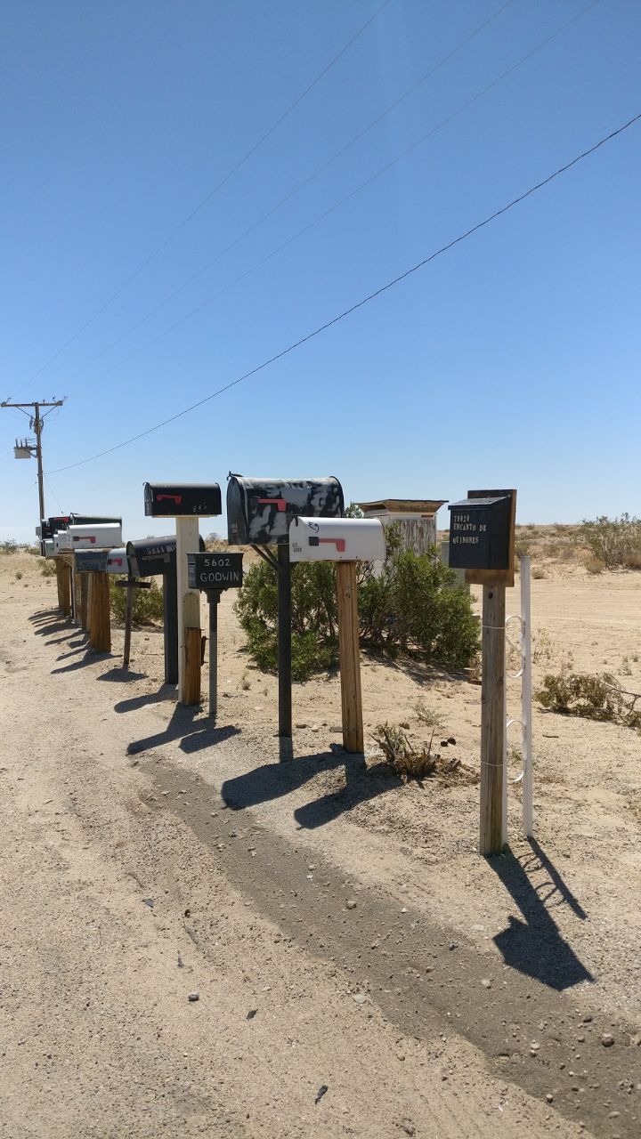 Wir gehören zu den Leuten, die eigentlich nach Feierabend losfliegen (Asienflüge gehen ja meist am späten Abend) und kurz vor Dienstbeginn aus dem Flieger steigen. Da unser Sohn aber am 13. Mai 30 Jahre alt wurde, haben wir tatsächlich einen freien Samstag verschenkt, und sind erst am Sonntag den 14.5. um 11 Uhr von Düsseldorf nach Los Angeles geflogen. Ankunft war dann gegen 14 Uhr in LA. Es folgten dann längere Wartenzeiten auf den Rollfeld, bei den Einreisekontrollen etc :| . Startklar in unserem Mietwagen (Jeep Renegade) waren wir dann um kurz vor 17 Uhr. Dann der erste Schock :dontknow: : das Navi sagte, bis Yucca Valley dauere es 3 Stunden 45 Minuten (Goggle sagte zu Hause noch gut 2 Stunden). Tatsächlich war irgendeine Einstellung falsch, so dass wir zwar eine kurze Strecke, aber mit 100.000 roten Ampeln hatten. So war es dann tatsächlich sogar nach 21 Uhr, als wir im Super 8 eintrafen :muede: . Ihr kennt das bestimmt: die erste Nacht ist kurz, um 6 Uhr waren wir munter :Kaffee: und um halb 8 standen wir bereits in Pioneertown :super: