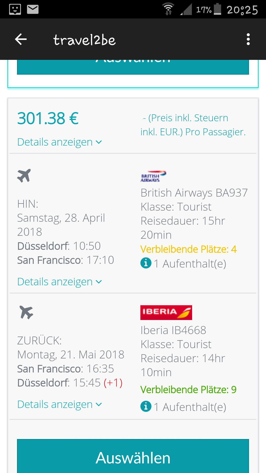 Buch aber über die Homepage von British Airways direkt, ist immer besser. Da geht das mit dem gleichen Preis zur Zeit.