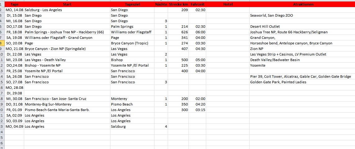 Daher begann ich vor 83 Tagen mit den Vorbereitungen... Zuerst wurden die Flüge nach Los Angeles gebucht, danach der Mietwagen und jetzt beschäftige ich mich nun eine Weile schon mit der Routenplanung.