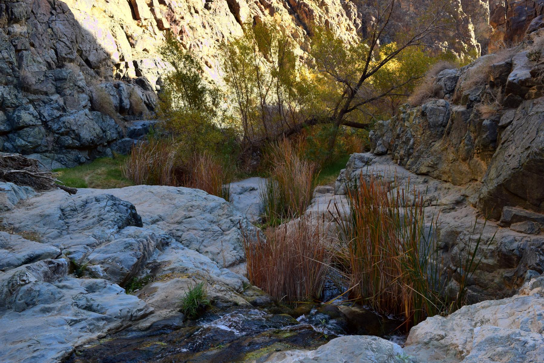 Ich wusste zwar vorher, dass ich hier zu einem Wasserfall laufe (Sagt ja auch der Trail Name), aber so stelle ich mir keinen Ort im Death Valley vor. Es ist absolut idyllisch und ich habe das Gefühl geradewegs in’s Paradies zu sein.