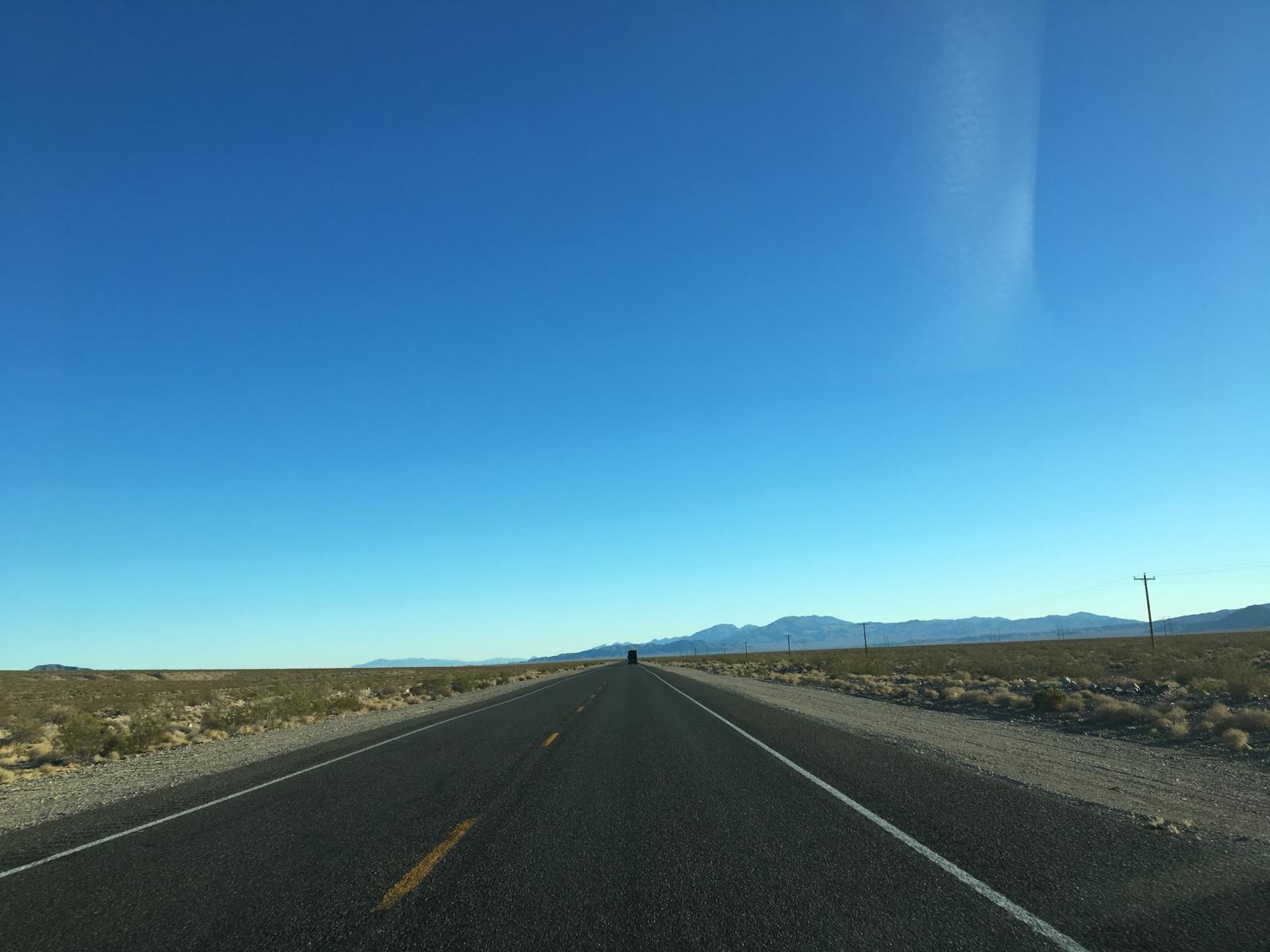 Um 14:15 Uhr erreiche ich kurz vor dem Ortseingang von Beatty den Abzweig nach Rhyolite.