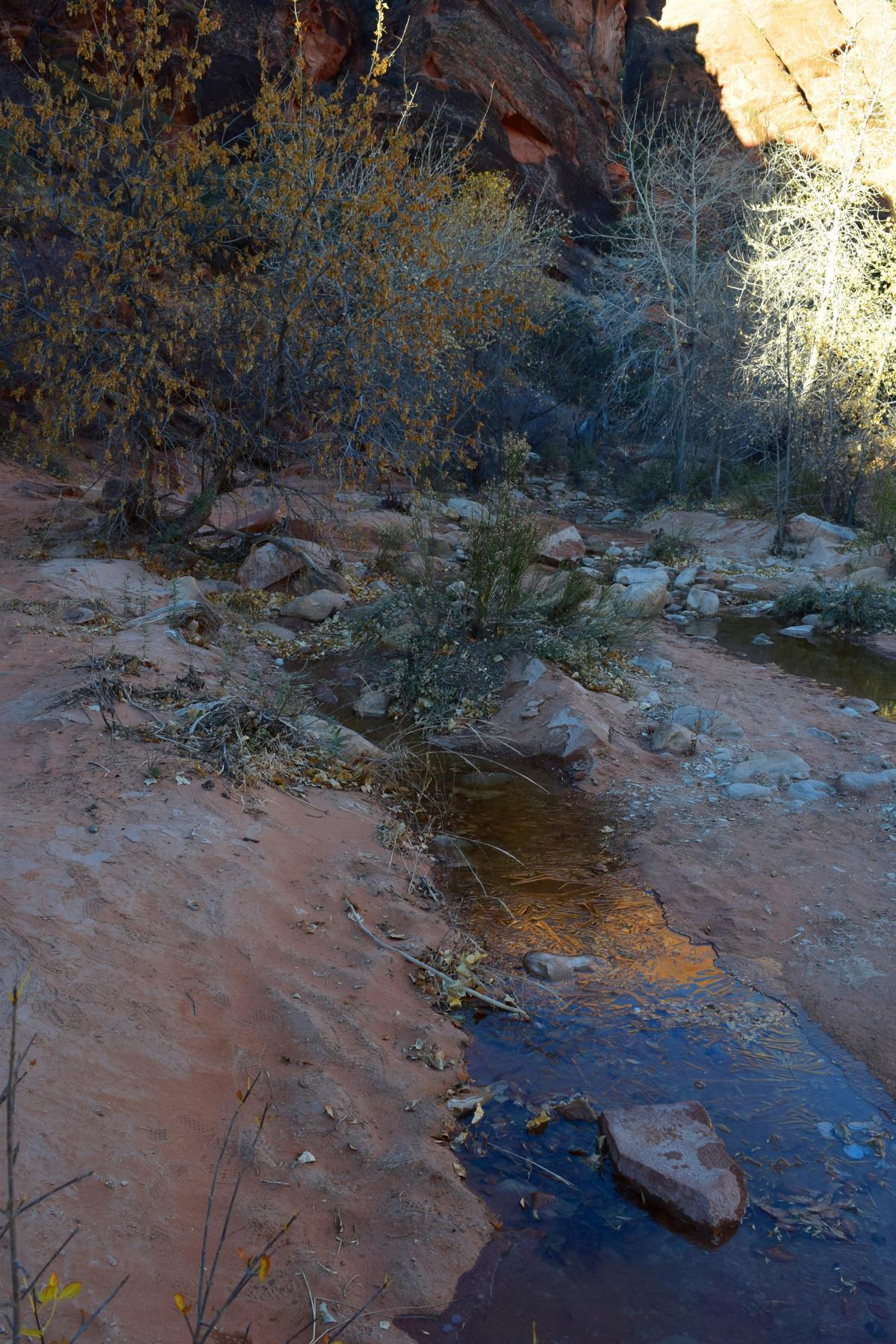 Zum einen ist meine Schuhsohle auf dem Sandstein extrem rutschig durch die vielen Wasser Durchquerungen und zum anderen ist mir das mit der Kamera zu gefährlich. Ein falscher Tritt, einmal ausrutschen und man landet mit dem Hintern im Wasser