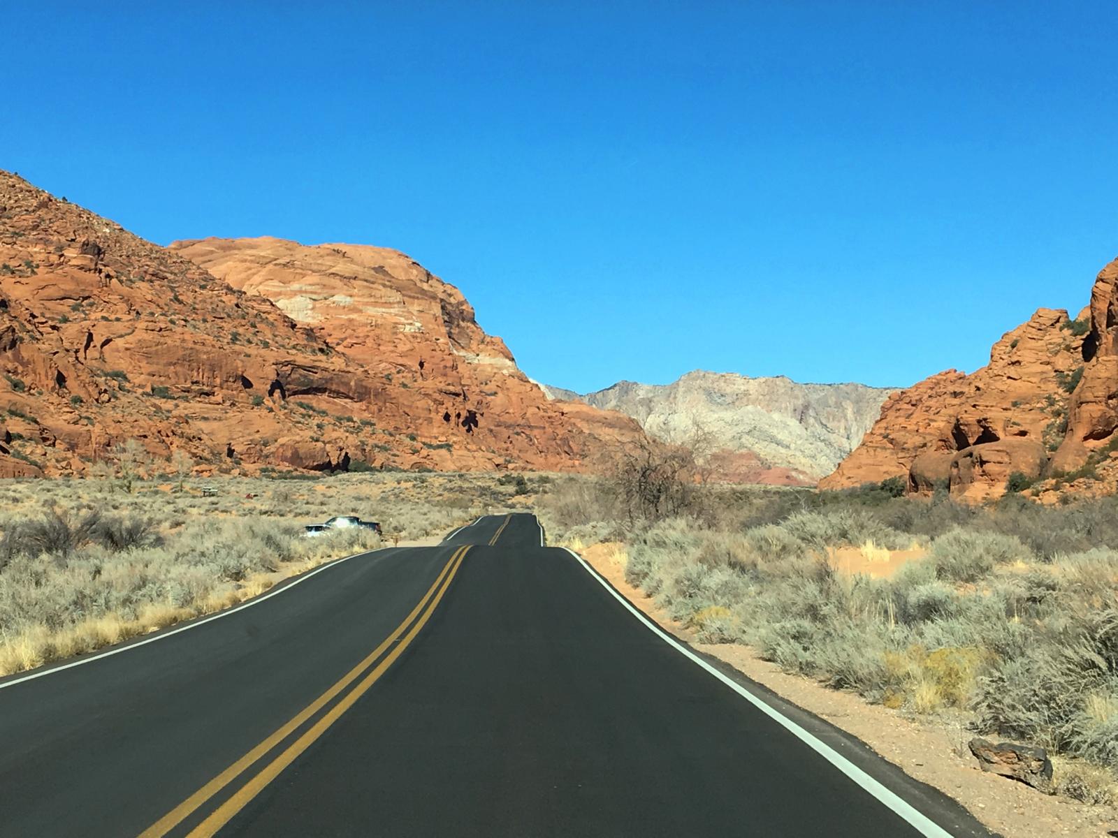 Von den Trails im Snow Canyon State Park hat mir der Johnson Canyon insgesamt am besten gefallen, auch wenn der ganze Park mich viel mehr begeistert hat als erwartet. Jetzt habe ich erstmal eine gute Fahrstrecke vor mir und die Sonne ist kurz davor unterzugehen.