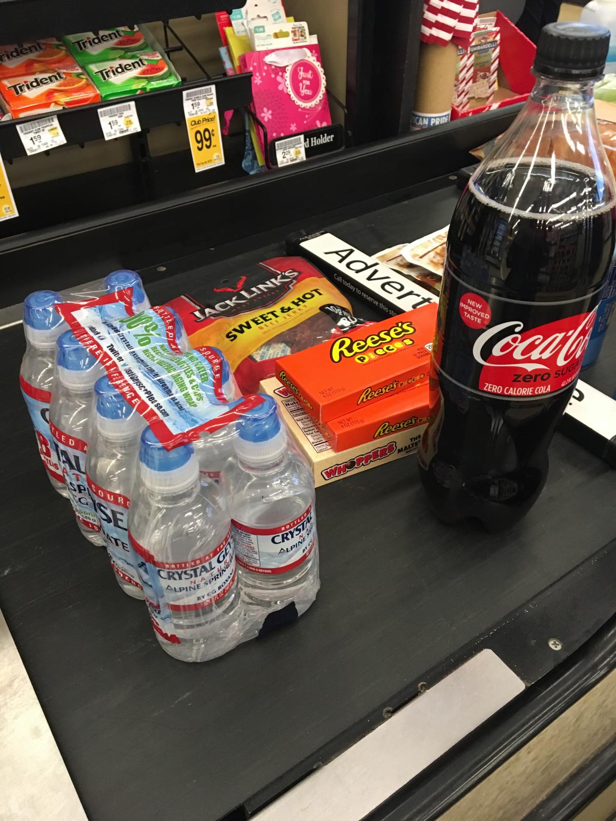 Ich halte am nächsten Supermarkt und besorge mir noch einige winzige Flaschen Wasser für den morgigen Tag, eine Cola für heute Abend und ein bisschen was zu knabbern (Eine Packung der Reeses Pieces ist noch im Care Paket für meine Freundin gelandet). Der Kauf der Whoppers (Milchschokolade Kugeln) werde ich noch bereuen, die werden mich wahnsinnig machen.