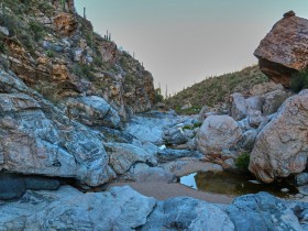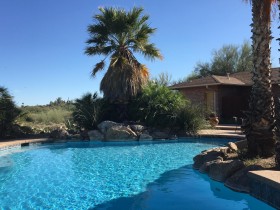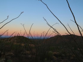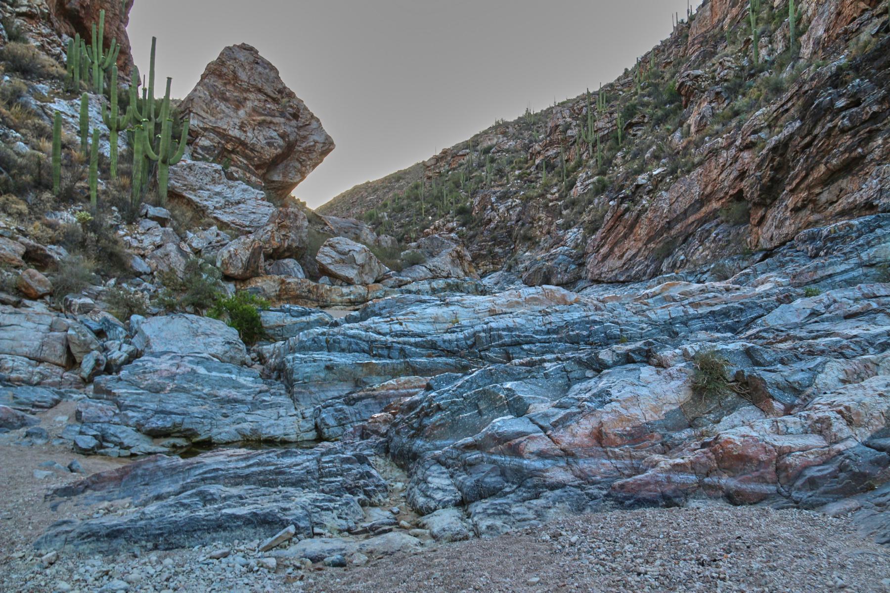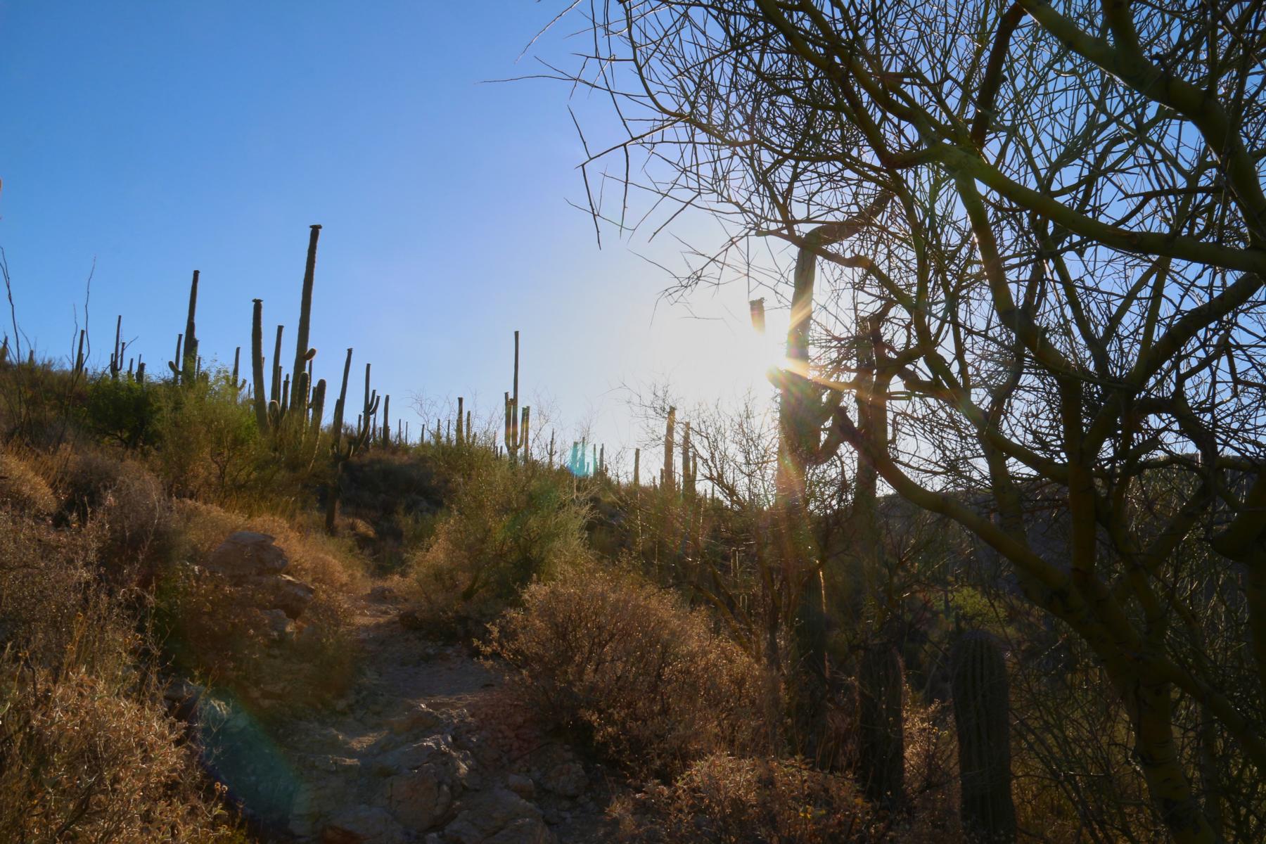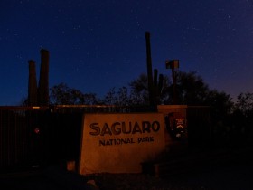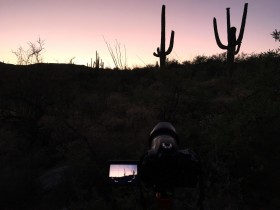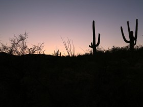 Eigentlich würde ich gerne ENDLICH die Milchstraße sehen, aber Tucson ist nicht grad klein und es gibt viele Lichter, die den Nachthimmel ein wenig trüben. Außerdem ist das Objekt der Begierde um die Uhrzeit nicht einmal aufgegangen, das dauert im Mai seine Zeit. Mit der ISO bin ich auch viel zu hoch gegangen und daher rauschen die Bilder diesmal leider sehr und ich bin nicht wirklich zufrieden. Das ist aber nicht so schlimm, eigentlich wollte ich sowieso Saguaros im Vordergrund und keine Palme.