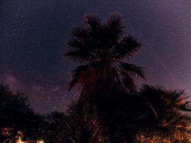 Eigentlich würde ich gerne ENDLICH die Milchstraße sehen, aber Tucson ist nicht grad klein und es gibt viele Lichter, die den Nachthimmel ein wenig trüben. Außerdem ist das Objekt der Begierde um die Uhrzeit nicht einmal aufgegangen, das dauert im Mai seine Zeit. Mit der ISO bin ich auch viel zu hoch gegangen und daher rauschen die Bilder diesmal leider sehr und ich bin nicht wirklich zufrieden. Das ist aber nicht so schlimm, eigentlich wollte ich sowieso Saguaros im Vordergrund und keine Palme.