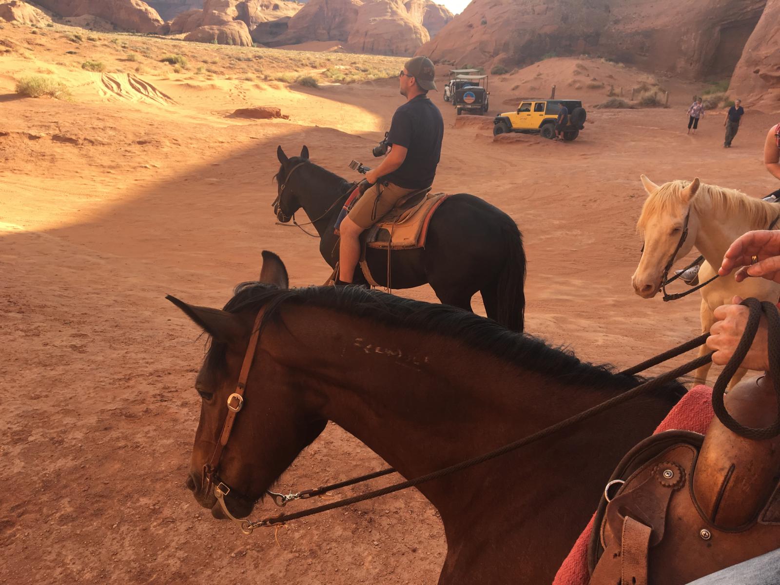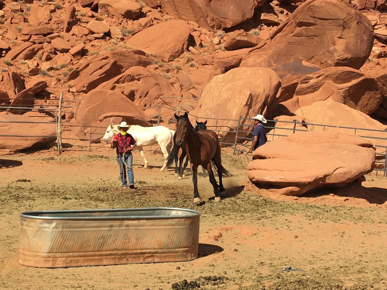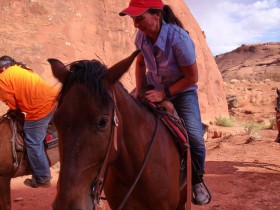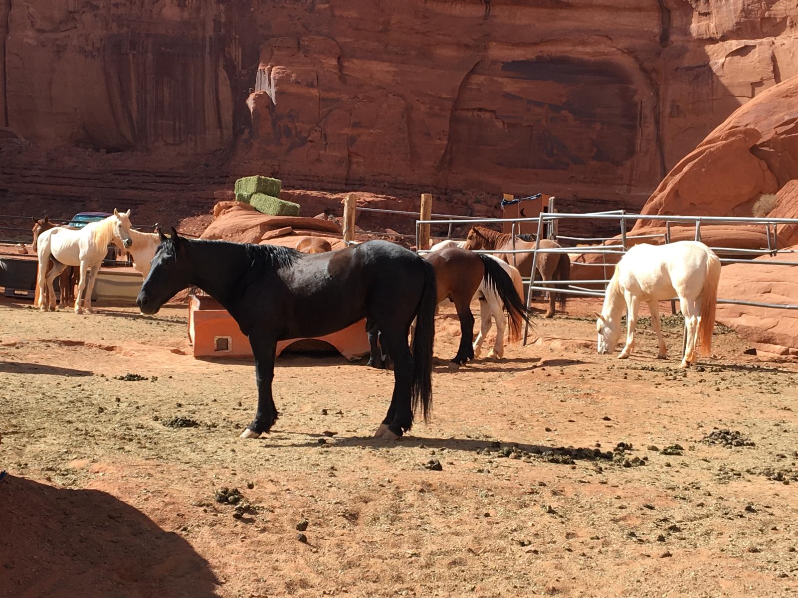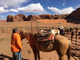 Das war eine sehr gute Entscheidung, denn von einer Abholung wusste hier keiner was und man ging davon aus, das wir nachher hier her kommen. Man kann einen Shuttle arrangieren, das kostet aber Zeit, also erkläre ich mich bereit, nachher eben nochmal hier her zu fahren, auch wenn das nicht so optimal ist. Die Navajos sind alle sehr nett und zuvorkommend und geben mir erst einmal alle nacheinander die Hand und stellen sich vor. In dem Moment kommt grad auch eine Gruppe vom Ausritt zurück und ich freue mich schon sehr auf nachher.