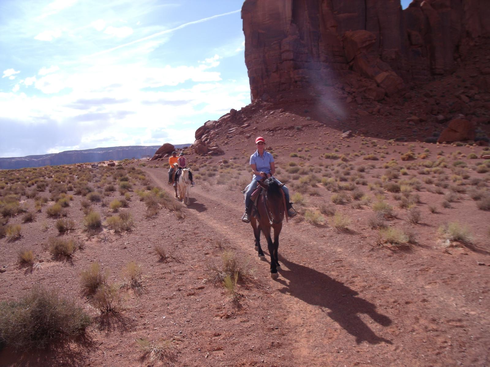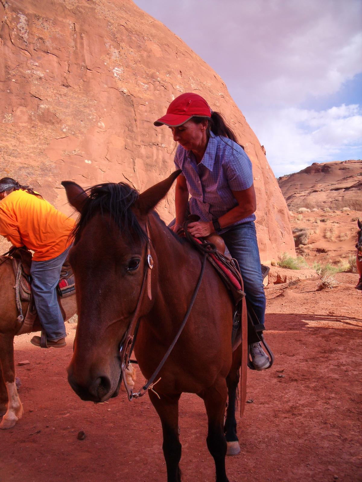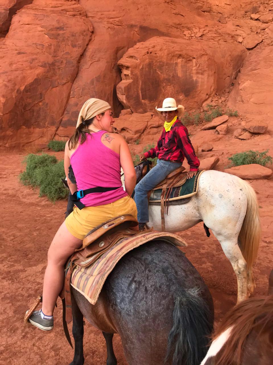 Das war eine sehr gute Entscheidung, denn von einer Abholung wusste hier keiner was und man ging davon aus, das wir nachher hier her kommen. Man kann einen Shuttle arrangieren, das kostet aber Zeit, also erkläre ich mich bereit, nachher eben nochmal hier her zu fahren, auch wenn das nicht so optimal ist. Die Navajos sind alle sehr nett und zuvorkommend und geben mir erst einmal alle nacheinander die Hand und stellen sich vor. In dem Moment kommt grad auch eine Gruppe vom Ausritt zurück und ich freue mich schon sehr auf nachher.