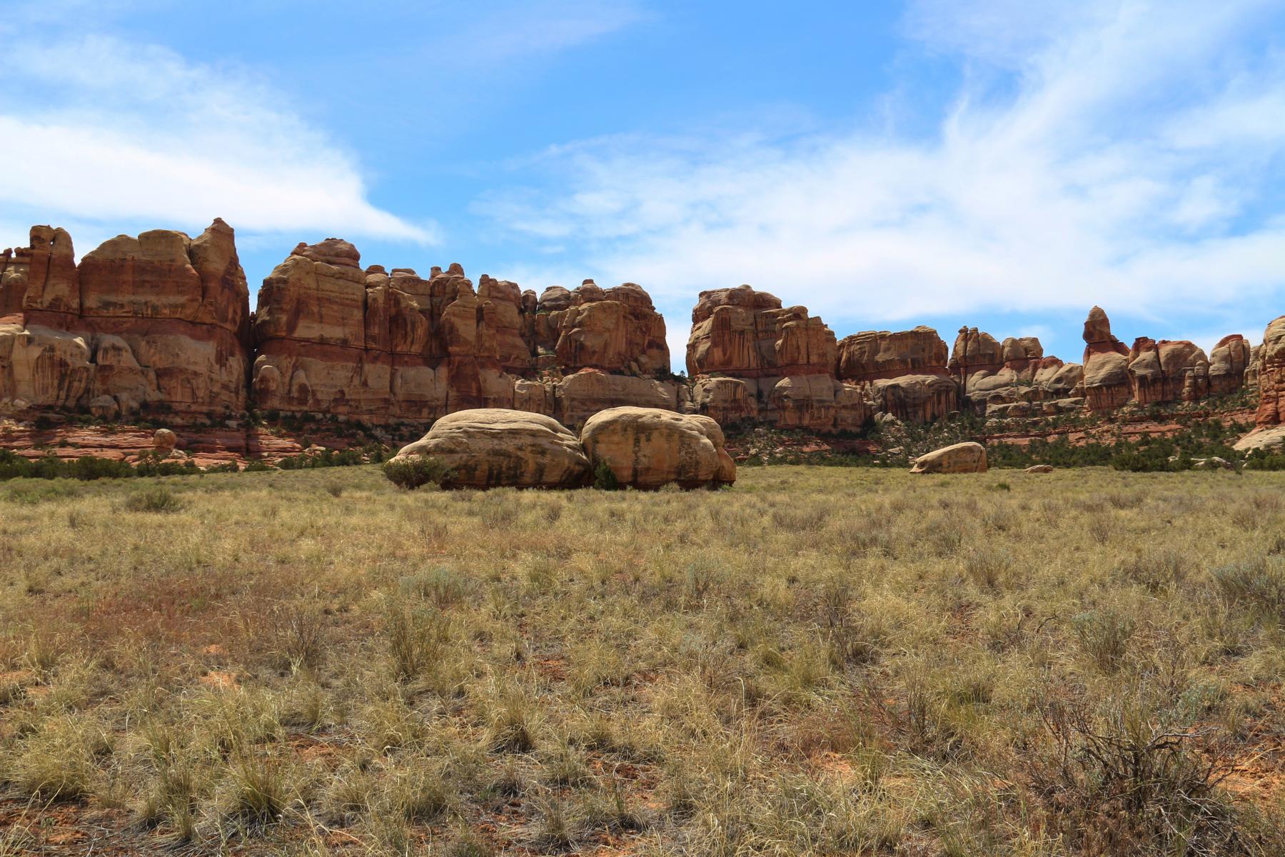 Der Chesler Park ist eine riesige freie, weite und offene Graslandschaft, die von den Needles des Canyonlands National Parks von der restlichen Welt abgeschirmt ist. Es ist ein ganz besonderer Ort, irgendwie ruhig, friedlich und total erhaben. Man fühlt sich einfach mal wieder ganz, ganz klein und unbedeutend. Ein ähnliches Gefühl hatte ich zuletzt am Racetrack im Death Valley, vergangenen Winter.