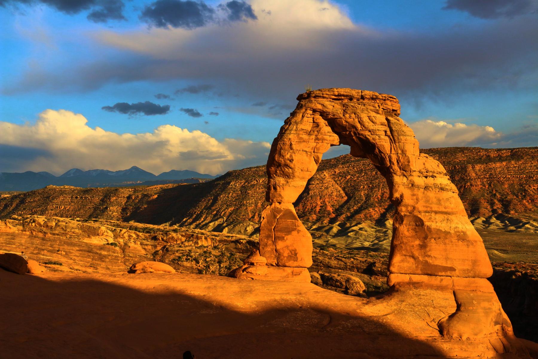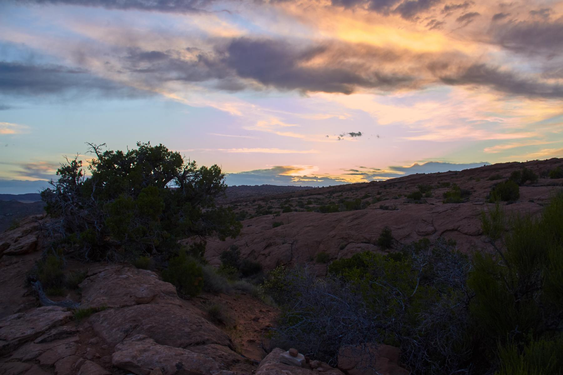 Hier oben hat man eine geniale Weitsicht auf den Arches National Park und die La Sal Mountains, die können wir aber momentan wirklich nicht genießen. Zum einen weht plötzlich ein eisiger Wind und zum anderen... WAS ZUR HÖLLE IST DA AM HIMMEL LOS?!?! Im nachhinein faszinierende Bilder, vor Ort... Uncool. Sehr uncool!