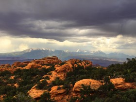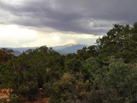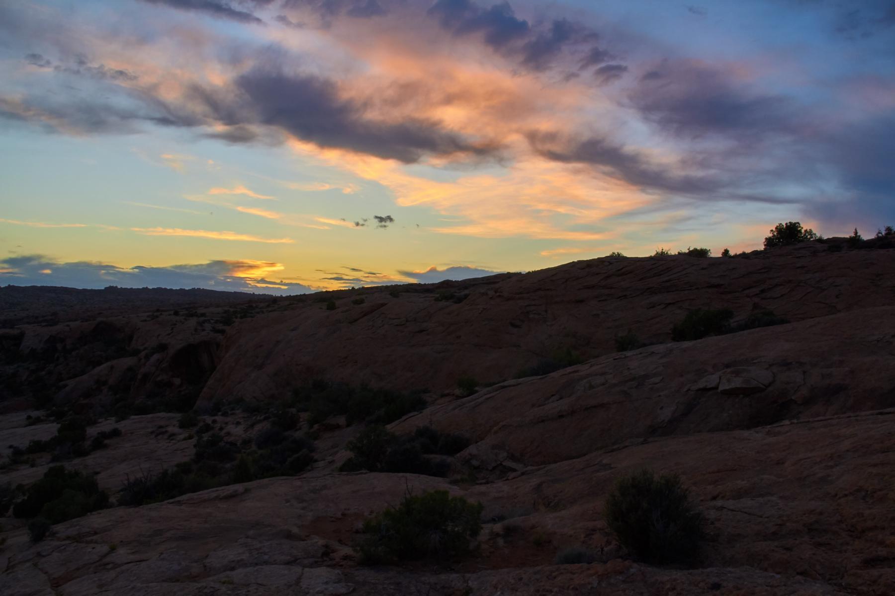 Hier oben hat man eine geniale Weitsicht auf den Arches National Park und die La Sal Mountains, die können wir aber momentan wirklich nicht genießen. Zum einen weht plötzlich ein eisiger Wind und zum anderen... WAS ZUR HÖLLE IST DA AM HIMMEL LOS?!?! Im nachhinein faszinierende Bilder, vor Ort... Uncool. Sehr uncool!
