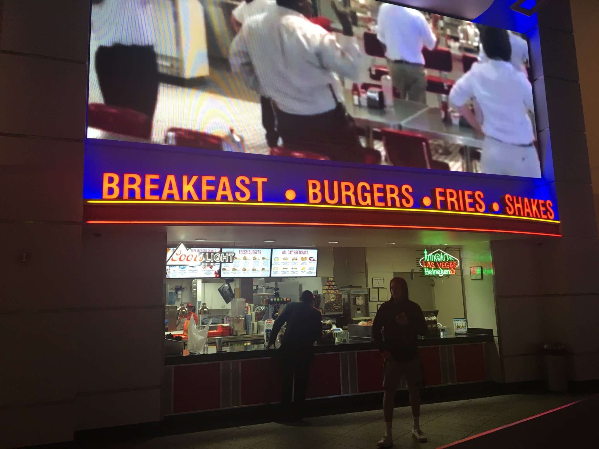 Einen weiteren kurzen Stop legen wir noch in Hurricane bei der Sinclair Tankstelle ein. Hier konnte ich im Winter immer mit meiner Kreditkarte an der Säule zahlen, ohne nach einem Zip Code gefragt zu werden und das funktioniert auch wieder problemlos. Jetzt wollen wir eigentlich bis zum Valley of Fire durchfahren, auf der Grenze zwischen Utah und Arizona gewinnen wir die Stunde zurück, die wir bei der Fahrt vom Grand Canyon zum Monument Valley vor einer gefühlten Ewigkeit verloren hatten und um 9:30 Uhr Pacific Time erreichen wir Overton. Meine Mutter muss mal auf die Toilette und Hunger bekommen wir auch schon wieder, also halten wir bei dem einzigen Laden an, den wir auf die schnelle finden können und der Zeitersparnis verspricht: McDonalds. Für mich eigentlich ein No Go im USA Urlaub, denn das kann ich auch zuhause sagen, aber für den schnellen Notfallplan dann doch in Ordnung.