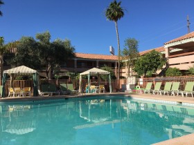 Das La Fuente Inn & Suites liegt direkt am Exit 2 der I8 in Yuma und hat damit eine optimale Anbindung für Durchreisende, von dem Verkehr ist Nachts nichts zu hören. Direkt gegenüber auf der anderen Straßenseite befinden sich zahlreiche Restaurantketten wie Panda Express, In & Out, Olive Garden, Red Lobster und Co., die bis spät abends geöffnet haben. Auch ein Walmart Supercenter erreicht man nach 5 Minuten Autofahrt, genauso wie das Yuma Prison.