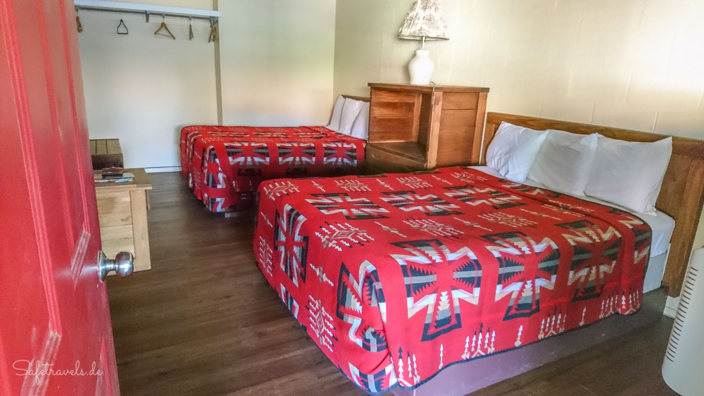 Die Lodge ist sehr einfach und recht altmodisch ausgestattet. Die Zimmer sind allerdings groß und auch die Bäder sind geräumig. WLAN gibt es nicht und auch mobile Daten sind Glückssache.