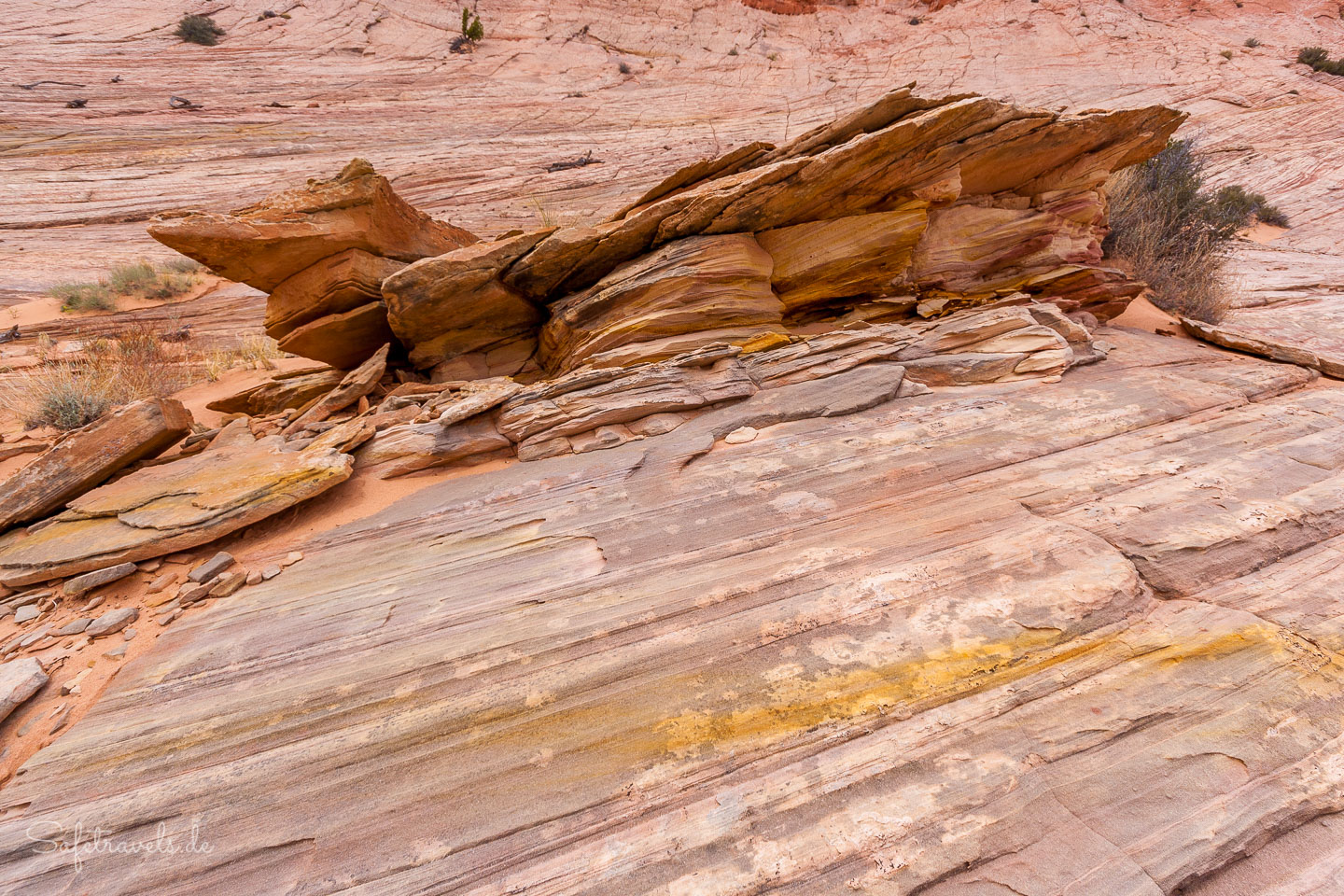 Während wir gemütlich bei unserem Kaffee sitzen, hören wir plötzlich Stimmen, die sich auf Deutsch unterhalten. Es geht um das Foto der "Wave", welches Ihr oben auf dem Bild seht. Einer der Typen meint so zu dem anderen: "Ey, das ist doch unsere Fire Wave aus'm Valley of Fire". Ja neee, ist klar...
