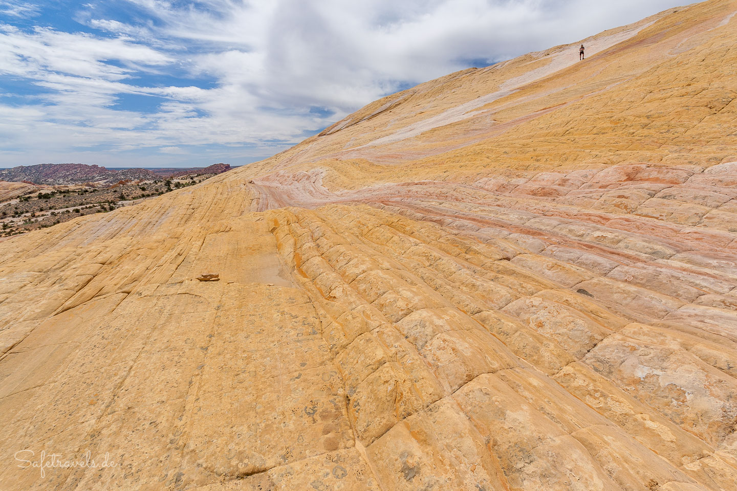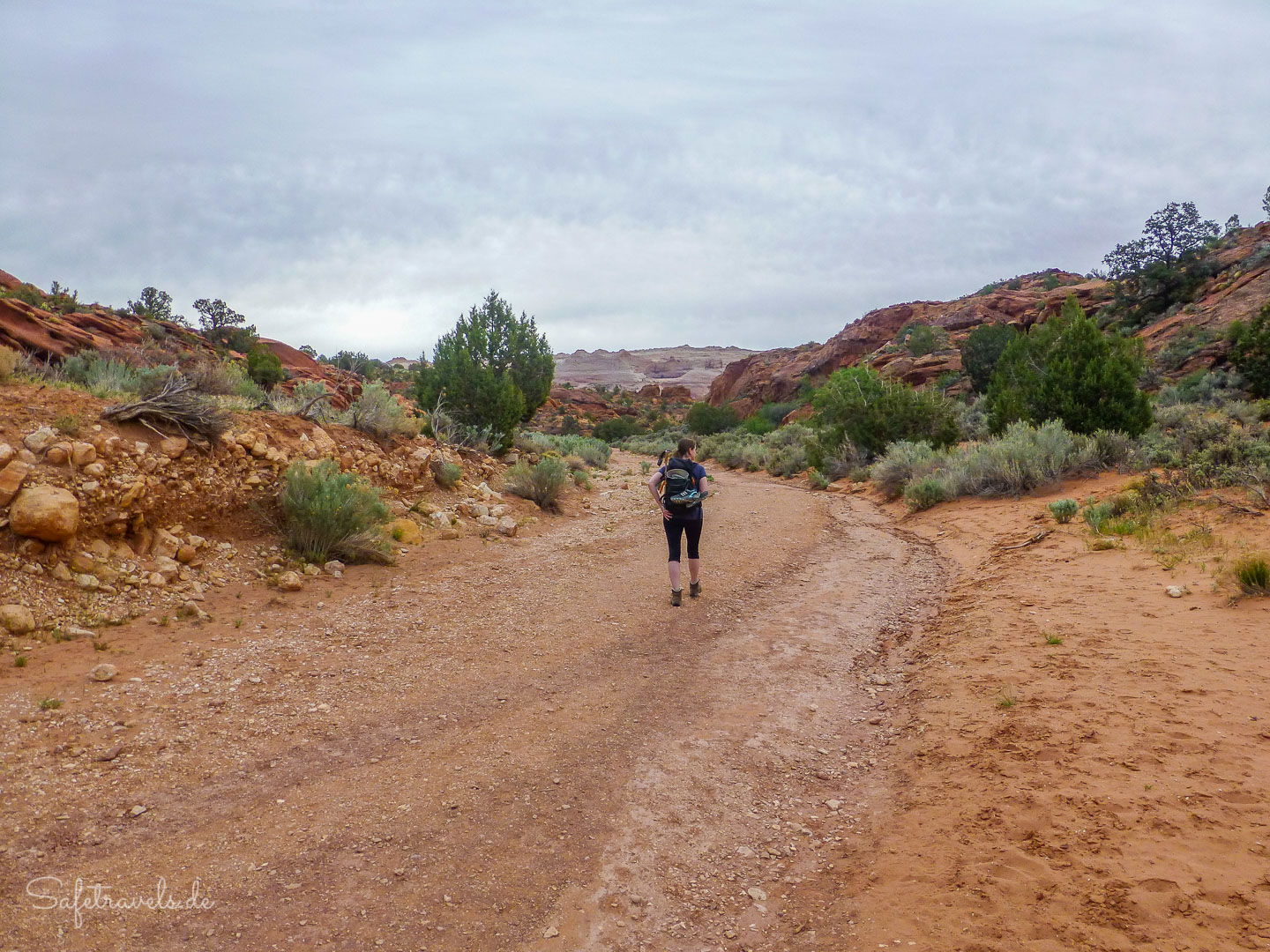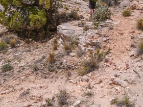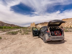 Gegen 13 Uhr passieren wir den Trailhead zum Lower Hackberry Canyon, an dem einige Autos parken. Einige Leute parken hier für den Yellow Rock, auf den wir heute auch noch klettern wollen. Wir halten uns jedoch an die Beschreibung von Peter Felix Schäfer und parken am Abzweig zur Brigham Plains Road.