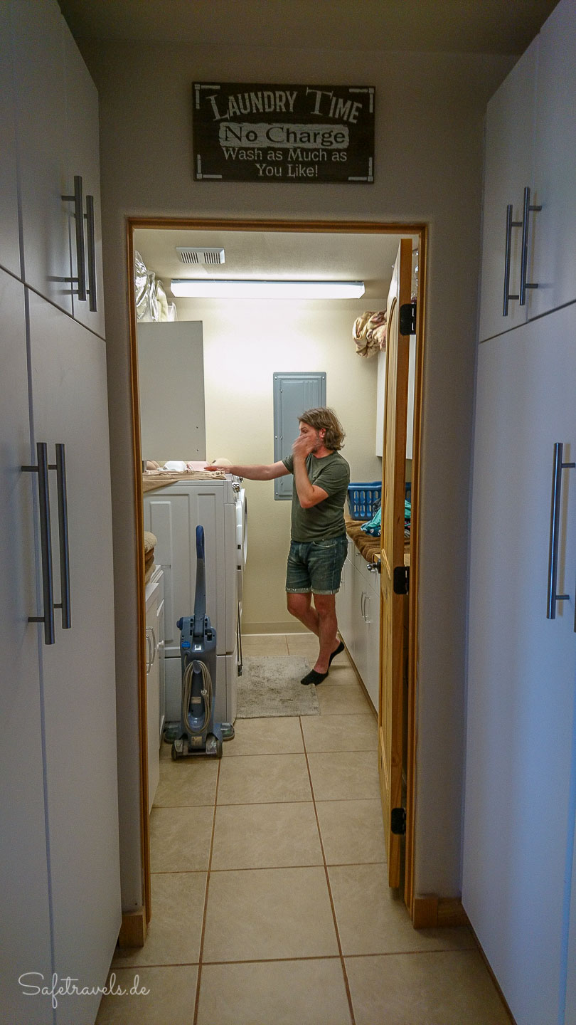 Beim Abstieg müssen wir insbesondere auf dem letzten Stück über das Geröllfeld sehr vorsichtig sein. Einige Abschnitte lege ich im Krabbengang zurück. Zum Glück haben wir Handschuhe dabei, die wir am Anfang des Urlaubs im Walmart gekauft haben. So reiße ich mir wenigstens nicht die Hände auf.