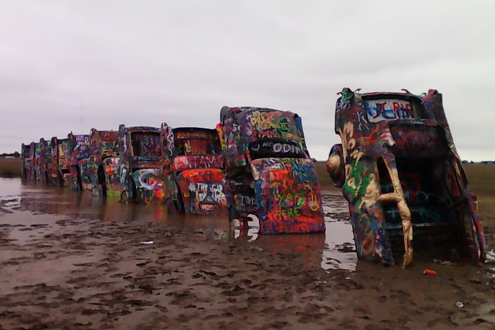 Leider sind die einstmals stolzen Fahrzeuge an der Rt 66, Nähe Amarillo TX, völlig verschmiert. Narrenhände......