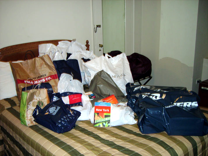 Hehe...das Bild kommt mir irgendwie bekannt vor...so sieht es bei uns auch immer aufm Zimmer aus. Die Shopping-Schnäppchen schön zur Schau gestellt...und dabei denkt man: WOW, ist das viel...und kurz danach: Ich will mehr! Und das geht nicht nur den Frauen so...psst...aber nicht weiter erzählen =). -
