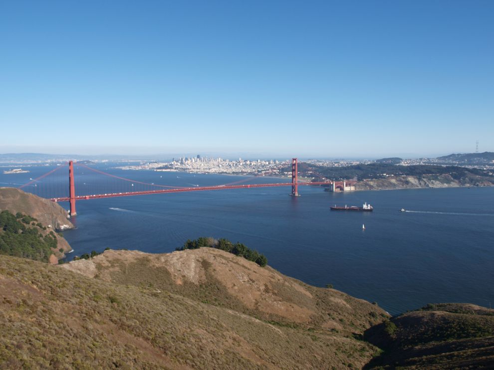 Und ich lag richtig, kaum waren wir am Park Presidio, sah ich schon, was ich bereits erahnt hatte: Kein Nebel, keine Wolke über der Bucht, nur strahlend blauer Himmel und Sonnenschein. Wahnsinn, ich konnte es nicht fassen. Noch bevor sich meine Eltern versahen, waren wir über die GGB gefahren und ich bog links ab um in die Marine Headlands zu gelangen. Im Jahr davor war die Strecke noch gesperrt gewesen, aber jetzt war die nagelneue Conzelman Road fertig gestellt. Also ab zu den Aussichtspunkten. Meine Eltern bekamen den Mund vor lauter Stauenen nicht mehr zu. Der Blick ist halt einzigartig, aber das brauche ich den geneigten Lesern hier wohl nicht näher zu erläutern.