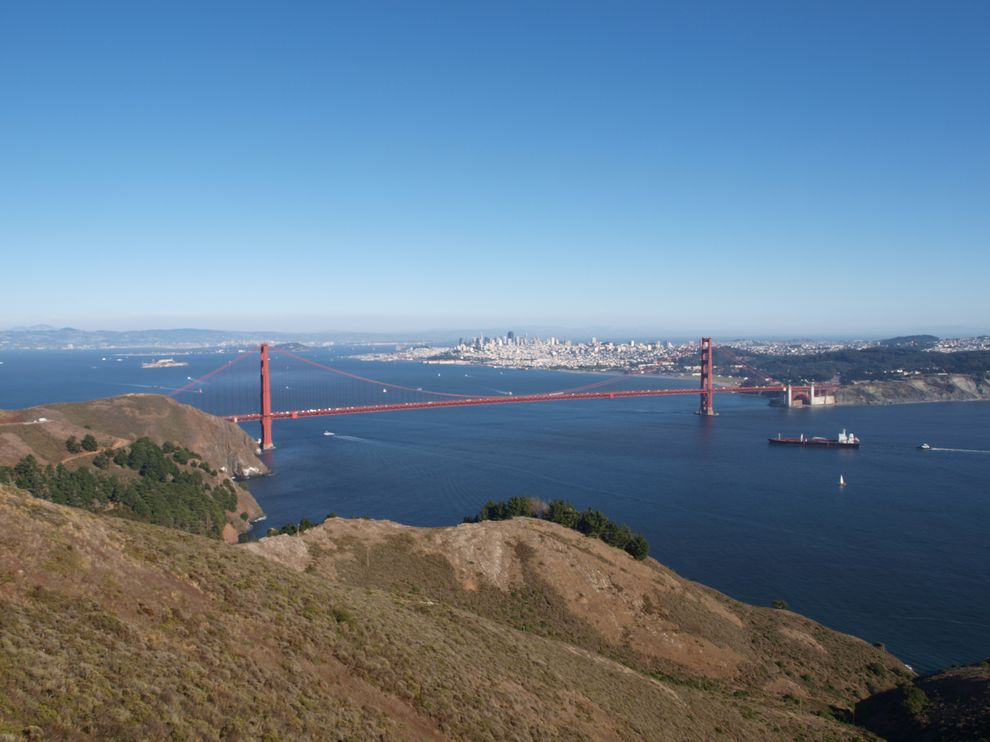 Und ich lag richtig, kaum waren wir am Park Presidio, sah ich schon, was ich bereits erahnt hatte: Kein Nebel, keine Wolke über der Bucht, nur strahlend blauer Himmel und Sonnenschein. Wahnsinn, ich konnte es nicht fassen. Noch bevor sich meine Eltern versahen, waren wir über die GGB gefahren und ich bog links ab um in die Marine Headlands zu gelangen. Im Jahr davor war die Strecke noch gesperrt gewesen, aber jetzt war die nagelneue Conzelman Road fertig gestellt. Also ab zu den Aussichtspunkten. Meine Eltern bekamen den Mund vor lauter Stauenen nicht mehr zu. Der Blick ist halt einzigartig, aber das brauche ich den geneigten Lesern hier wohl nicht näher zu erläutern.