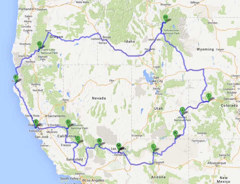 Ab SF soll es aber diesmal gen Norden gehen und da findet man irgendwie nicht mehr so viel. Wir wollen bis zum Yellowstone NP hoch, gibt es hier auf der Strecke noch Punkte die man auf jeden Fall mitnehmen sollte? Hinter dem Yellowstone habe ich als Zwischenziel u.a. Glenwood (Hot Springs), den Arches NP und das Monument Valley. Zurück geht's dann über den Grand Canyon nach Las Vegas.