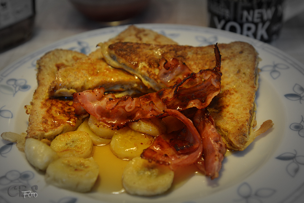 Bacon geht überall :-) French Toast mit Bacon und dazu Bananen + Sirup ist halt der Klassiker - zu Recht!simon-unterwegs.com