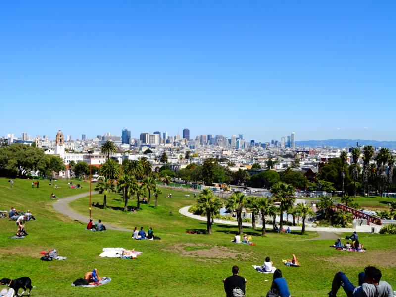 sehen) düsen wir wieder los, erstmal ins Hotel. Auf dem Weg zum Cow Hollow Inn in der Lombard Street halten wir aber noch mehrere Male kurz an um genügend Bilder zu knipsenWir sind verliebt – SFO hat uns mit gigantischem Wetter empfangen und uns verzaubert. Wir machen wie wild Bilder, weil wir alles so toll finden! Um 15h checken wir dann aber endlich ein. Einen Tiefgaragenparkplatz haben wir zum Glück mit dabei. Auch von unsrem Zimmer sind wir total begeistert. Riesen groß, mit zwei Betten, einem tollen Bad und einen schönen Ausblick auf die Lombard Street –