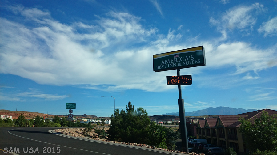 Das Hotel liegt direkt an der Interstate, Ausfahrt St. George Boulevard. In der Umgebung befinden sich zahlreiche Geschäfte und Restaurants. Für eine Zwischenübernachtung ideal. Unser Zimmer lag im 1. Stock und nicht auf der Seite zur Interstate. Lärm war kein Problem. Die Zimmer sind schön groß und sauber. WLAN ist kostenlos verfügbar und lief einwandfrei. Den Pool haben wir nicht getestet, da er den ganzen Nachmittag von Familien mit Kindern belegt war. Das Frühstück wurde in der Hotellobby bereit gestellt und war völlig okay. Alles in allem ein angenehmer Zwischenstopp auf dem Weg von Escalante nach Las Vegas.
