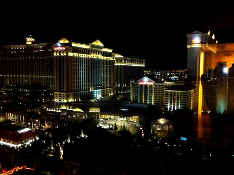 Gefühlt hatten wir mit Abstand das hässlichste Hotel auf dem Strip, zumindest von außen. Das ist aber natürlich völlig unwichtig, denn der Ausblick aus dem Zimmer ist ja viel wichtiger. Ich muss sagen, bei diesem Ausblick vom Bett aus schläft man sehr gerne bei offenen Gardinen!