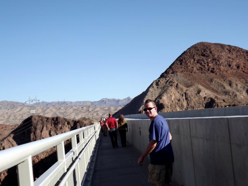 Wie bereits im vorherigen Bericht erwähnt, hatten wir im Valley of Fire nur einen halben Tag Zeit, weil noch zwei weitere Programmpunkte abzuarbeiten waren. Der erste davon ist der berühmte Hoover Dam, an dem wir aber nur sage und schreibe zehn Minuten Zeit hatten. Erst hatten wir überlegt den Besuch ganz zu streichen, aber dann dachten wir uns, zehn Minuten sind doch immernoch besser als nichts. Leider sind dadurch die Bilder verschwommen, im Laufschritt fotografiert es sich nicht so gut :)