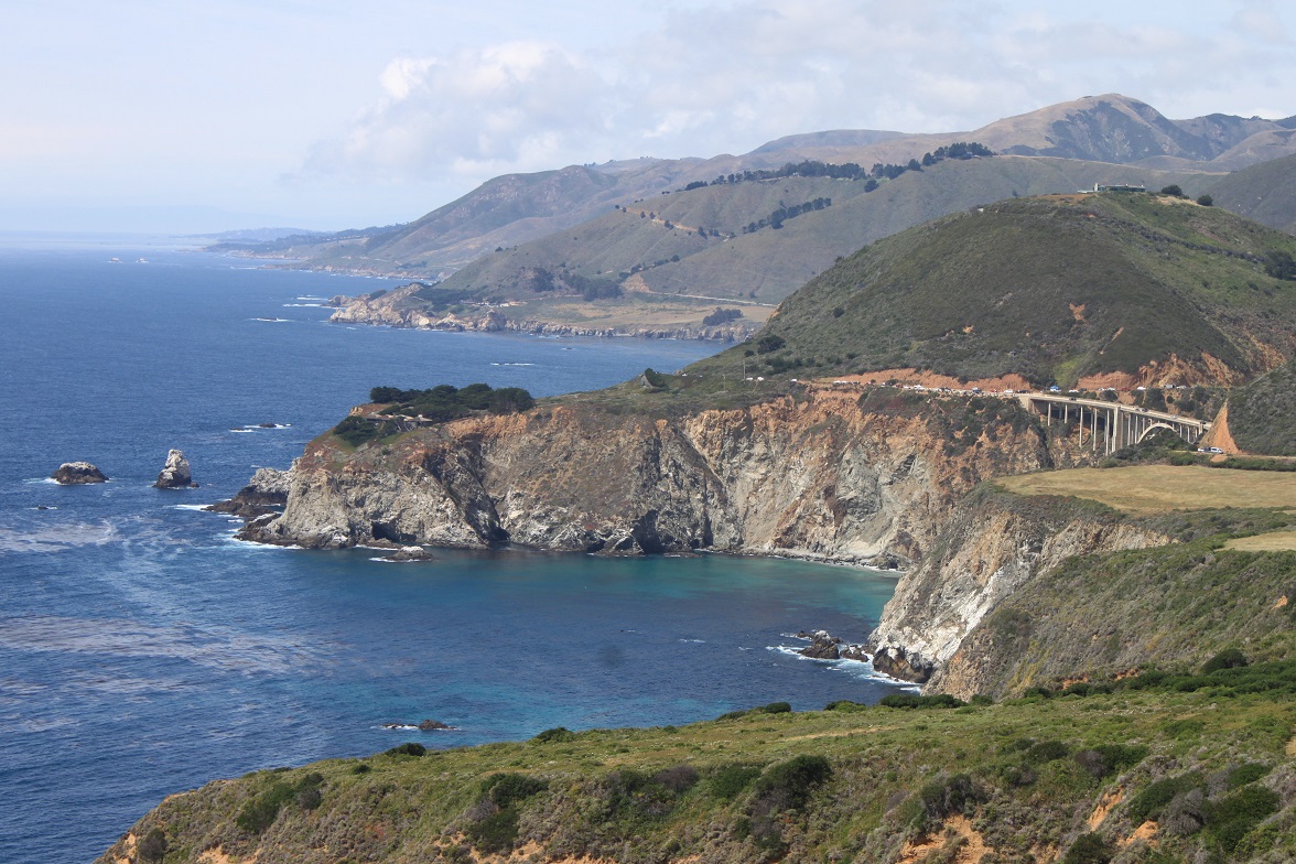 Er redet irgendwas über garlic. Später verstehen wir erst, was er meinte. Wir werden den Gestank von Knoblauch nicht mehr wegbekommen in einem der größten Knoblauch Anbaugebiete Kaliforniens!? Haha. Wir holen unser Gepäck und laufen/fahren dann gezielt zum Alamo Schalter. Wir sind froh, dass wir uns nicht anstellen müssen bei dieser langen Schlange, denn wir haben ja die Skip the Counter Variante im Voraus schon gebucht und können sofort zu unserem Auto. Bei den Midsize SUV’s stehen nur zwei Autos – ein Japaner und ein Jeep Cherokee! Wir nehmen natürlich den Jeep – nagelneu!! Baujahr Mai 2015! Wir sind begeistert und düsen los! Berni ist leider langsam sehr müde und die Fahrt nach Gilroy ist total anstrengend. Wir können das „Endlich angekommen sein-Gefühl“ gar nicht richtig genießen. Nach 1,5 Stunden kommen wir endlich im Motel 6 an. Es ist mittlerweile stockdunkel. Wir bringen unsere Koffer aufs Zimmer und finden das Zimmer voll ok. Da wir ja morgen früh gleich nach Monterey fahren wollen, beschließen wir heute noch einkaufen zu fahren. Wir suchen also den nächsten Walmart raus und fahren los. Das tolle Navi leitet uns gleich mal in ne Einbahnstraße, leider die verkehrte Richtung – bei der Dunkelheit ist nix zu erkennen. Die uns entgegenkommenden Autos weichen Gott sei Dank alle hupend aus und wir sind schnell wieder auf der richtigen Spur. Aber wir sind beide total geschockt und wollen am Liebsten heim. Aber nein, weiter geht’s! Am Walmart angekommen, bestätigt sich uns der erste Eindruck von Gilroy. Total unheimlich! Vielleicht liegt es einfach daran, dass es so dunkel ist und wir zum Ersten mal alleine soweit weg von zu Hause sind, aber wir sind jetzt total verzweifelt. Wir laufen kurz durch den Walmart und kaufen nur das Nötigste. Wir wollen nur noch ins Bett und finden alles doof. Hoffentlich wird’s morgen besser!