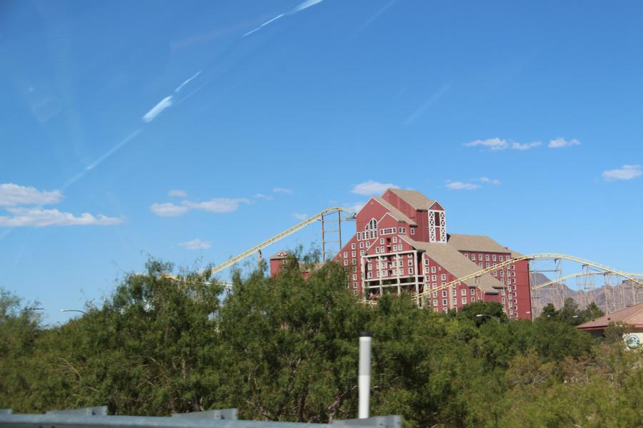 Wir verlassen das Preserve und fahren danach irgendwann auf die Interstate. Irgendwann kommen wir zwangsläufig an Primm vorbei und ich werfe ein paar traurige Blicke auf Desperado, den schönen Arrow Coaster, der für ein paar Tage der höchste Coaster der Welt gewesen war... Irgendwann vor vielen, vielen Jahren. Ich mag ihn total gerne, Dominik nicht so. Trotzdem wären wir (na gut... vor allem ich :D) gerne nochmal gefahren, aber das Buffalo Bills schmeißt den Liftmotor grundsätzlich nur am Wochenende an. Schade... So bleibt es diesmal bei einer Durchfahrt.