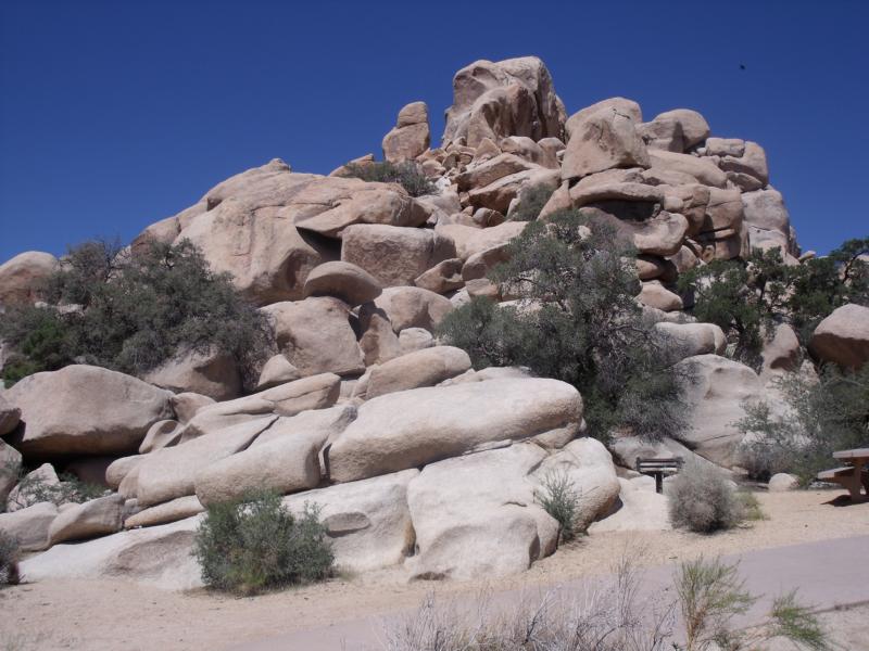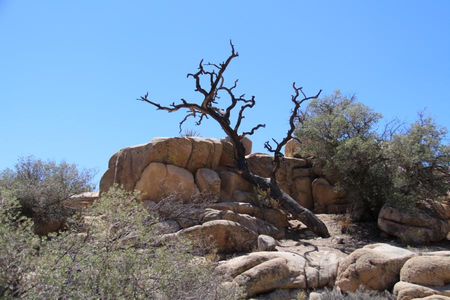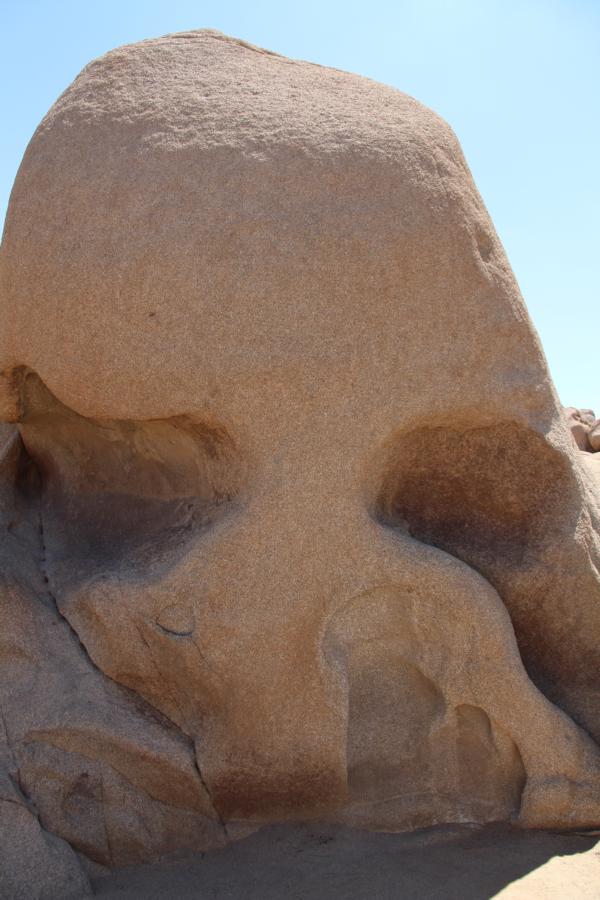 Wir sitzen wieder im Auto und genehmigen uns erstmal eine weitere kalte Dose aus der göttlichen Kühlbox. Danach machen wir uns auf den relativ kurzen Weg zurück zu den Jumbo Rocks und dem Skull Rock. Unterwegs halten wir kurz nochmal an, irritiert von einem Schild am Straßenrand. Ja haben wir denn schon Halloween?