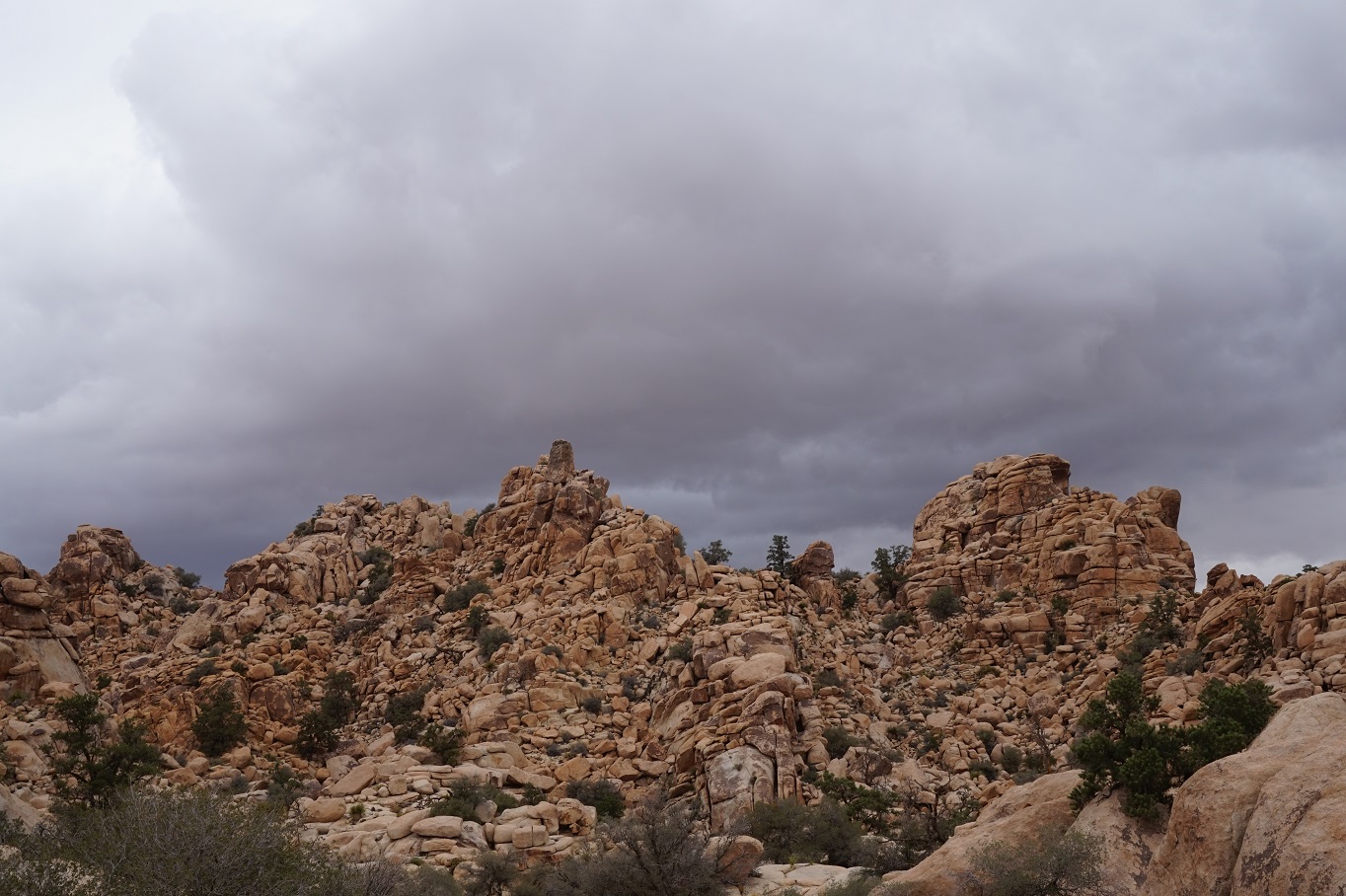 Wir machen noch einen kurzen Abstecher zu den Jumbo Rocks und kraxeln etwas darauf rum. Dann geht's zurück zu unserem Motel 6 und wir haben Glück denn auf dem Rückweg beginnt es tatsächlich richtig zu regnen.