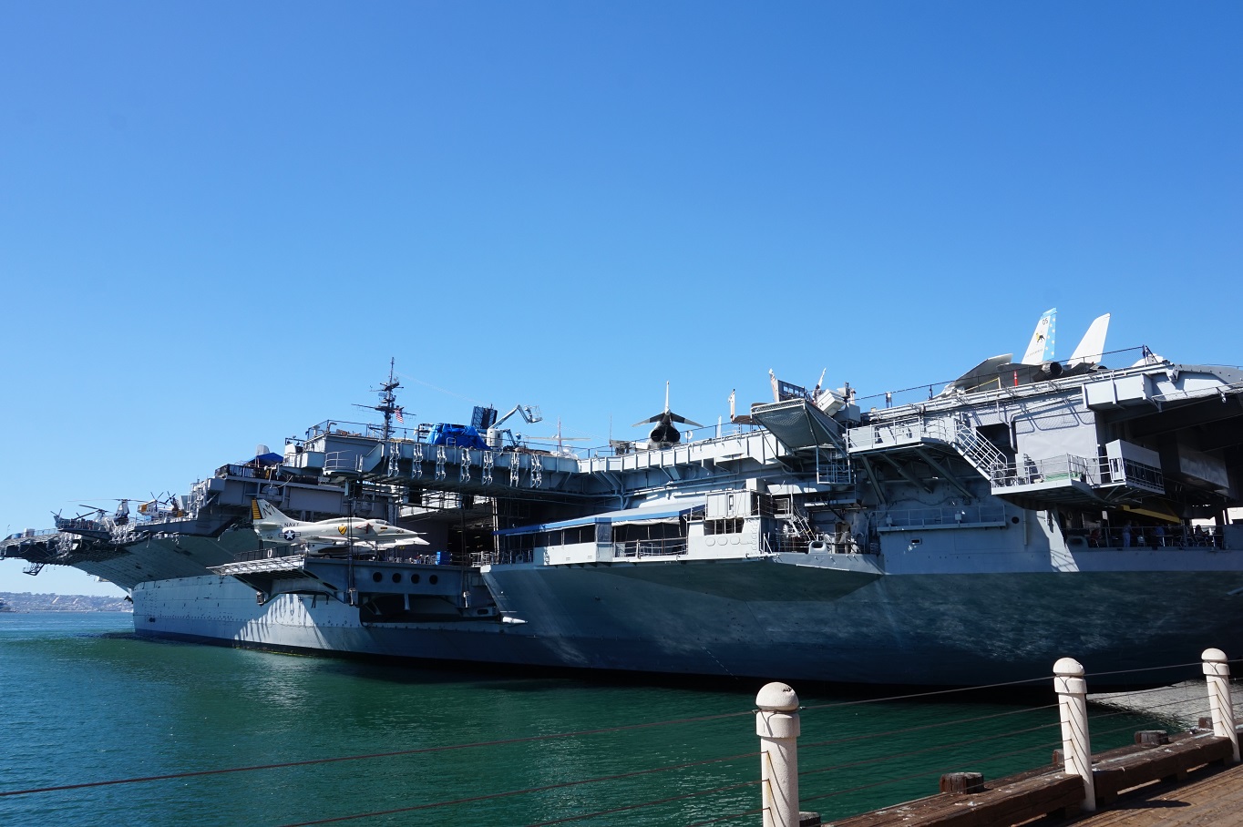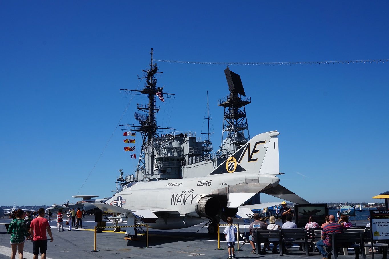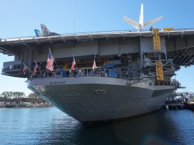 Heute morgen geht's dann aber wirklich zur USS Midway. Einem ausgemusterten Flugzeugträger der US Marine, der als Museum im Hafen von San Diego liegt. Letztmals im 1. Irakkrieg 1990/91 im Einsatz kann man heute diese "schwimmende Stadt" als Touri erkunden.