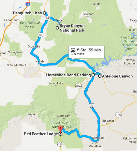 Silke, wegen der Zufahrt zum Grand Canyon, du meinst von Osten, oder? Google schlägt mir zumindest folgende Route vor: